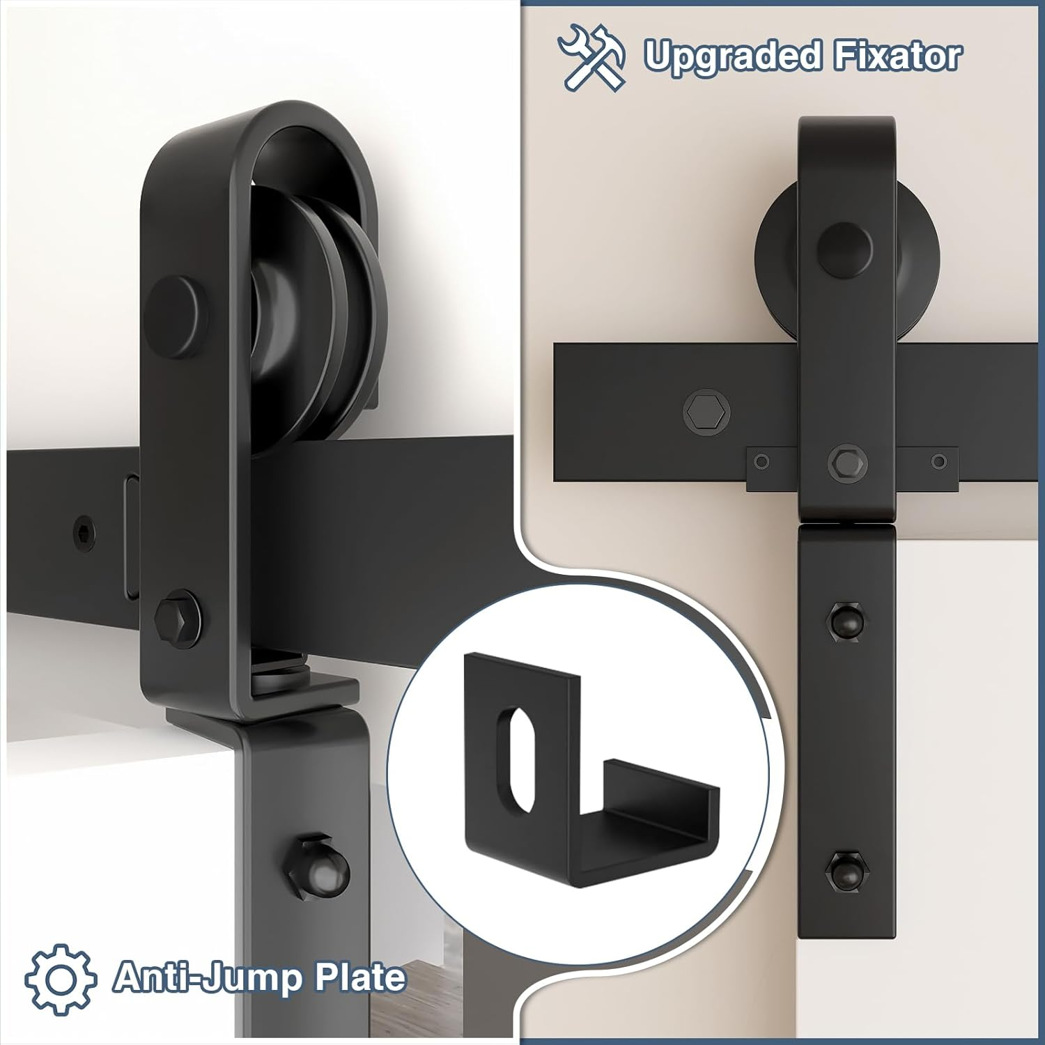 Black J-Shape Sliding Barn Door Hardware Roller Set