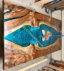 Big Conference Blue Resin Epoxy Table Acacia Wood Handmade Luxury Furniture Déco