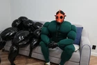 Muscle Suit for cosplay halloween Manufacturing 3-6weeks. Mask, bracelets, not for sale. I sell only muscle suit. SIZE GUIDE: Size: Standard Muscle suit is made of spandex fabric. 1. Height for 170-195cm. 2. Chest for 34-48 inches 3. Waist for 30-48 inches 4. Hip for 19-32 inches. 5. Biceps for 11-20 inches. 6. Calf for 10-22 inches. Front small zipper and one lock zipper on the back. (Size is for body from minimum to maximum in inches. If your body measurements are larger than these measurements, then this size will not fit you). Shipping worldwide 10-45days