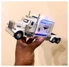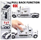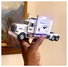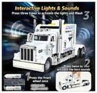 Experience the thrill of the open road with our Semi Trailer Big Rig Model Truck Collectible. This meticulously crafted model features functional front and rear lights that can be activated for an authentic touch, along with realistic horn sounds that bring the excitement of trucking to life. Simply pull back on the rig, release, and watch it zoom across your space, making it a perfect addition to any collection or a fantastic gift for truck enthusiasts. PLEASE NOTE: the box arrived at our warehouse with a little damage (See pictures uploaded). That aside, this item is brand new.