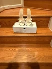 Bijou Ivory Strappy Kitten Heel Sandals Size 9M Open Toe Dress Shoes by A.J. Valenci These strappy open-toe sandals feature a charming decorative knot detail across the toe strap, adding a soft, feminine touch to their refined silhouette. The slim kitten heel provides a subtle lift—typically around 1.5 to 2 inches—enhancing posture while remaining stable and comfortable for extended wear. This makes them especially popular for singing performances, theater productions, and events that require standing or walking for long periods. Crafted with a likely synthetic faux-leather upper, these sandals reflect the quality and construction standards commonly associated with the Bijou and A.J. Valenci labels. The cushioned footbed features the “BIJOU” logo printed on the heel area, while the lightweight sole offers easy, slip-on wearability. Their neutral ivory color pairs effortlessly with bridal outfits, evening dresses, formal skirts, or elegant trousers. Product Details: Brand: Bijou (also known as Bijou New York or Bijou by A.J. Valenci) Color: Ivory (as marked on the original box) Style: Strappy open-toe kitten heel sandals Size: US Women’s 9 M (Medium width) Stock Number: 16-2169-7 (shown on box) Heel Type: Kitten heel (approx. 1.5–2 inches) Upper Material: Synthetic faux leather Sole: Branded footbed with BIJOU logo Country of Origin: Made in China Condition: Used one time, resting in their original box. The original retail labeling remains attached, making them ideal for gifting or personal use. Please review all photos carefully for exact condition details. Why You’ll Love Them: Elegant ivory color suitable for weddings, formal events, and performances Comfortable kitten heel for all-day or stage wear Lightweight, slip-on design for easy use Decorative knot detail adds a stylish focal point Versatile and timeless look for multiple outfits and occasions Perfect for bridesmaids, choir members, performers, or anyone seeking a graceful, comfortable dress sandal, this pair of Bijou kitten heels is a wonderful blend of beauty, stability, and classic charm. Add them to your collection today and enjoy refined style with dependable comfort. = = Required Item Specifics Brand: Bijou (also known as Bijou by A.J. Valenci) US Shoe Size: 9 Style: Strappy Sandals Color: Ivory Department: Women Upper Material: Synthetic Faux Leather Suggested / Pre-Filled Item Specifics Color: Ivory Customized: No Features: Ankle Strap, Decorative Knot Detail Occasion: Party/Cocktail, Formal, Wedding, Performance Pattern: Solid Personalize: No Season: Summer, Spring, Fall Shoe Width: M (Medium) US Shoe Size: 9 Vintage: No Additional (Optional but Recommended for Better Search Visibility) Type: Heeled Sandals Heel: Kitten Heel Heel Height: Low (Approx. 1.5–2 in) Heel Style: Kitten Toe Shape: Open Toe Closure: Buckle Accents: Knot, Strap Detail Model: 16-2169-7 Character: None Material: Synthetic Sole Material: Synthetic Insole Material: Synthetic Country/Region of Manufacture: China UK Shoe Size: 7 AU Shoe Size: 9 EU Shoe Size: 40 UPC: Does Not Apply