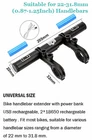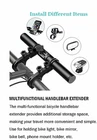 Bike Handlebar Extender USB Charger Handle Bar Extension Mount Bracket Holder [4000mAh Bike Phone Charger]--The bike handlebar extender has a built-in 4000-mAh rechargeable lithium battery 2*18650 battery, It can charged by USB port of computer or other power supply, it can charge for phone and bike mirror [Handlebar Extender and battery Installation]- Because the Samll tool and Screw,we need more patience ,first need adjust one piece Extender holder to suitable handlebar place ,second use the follow tool fixed,later need a little adjust will be well. Battery and the tube all have the install direction , we must do as it [Light aluminum alloy material]--The clamps are well designed and sturdy, made of light aluminum alloy which is durable and resistant to corrosion, rusting, or color fading. [Double Clamp and Gasket Design]- The double clamp for fixing can firmly fix the handlebar bracket. Double rubber pads protect your handlebar from slipping or scratching off the bar. [Handlebar Compatibility]--The bike handlebar extender fit most bikes, suitable for various handlebar sizes ranging from a diameter of 22.5 mm to 31.8 mm. USB Rechargeable Bike Handlebar Extension * Install the handlebar extender to your bicycle handlebar, add extra storage space for the bicycle. * Fixed double clips can greatly improve the safety during riding, and the installation position and angle can be adjusted by yourself. * This bike handlebar extender is also an excellent gift for your lover, family or friends. Specification Colour: Black Material: Aluminum alloy Weight: 217.5g Charging: USB charging Battery: 2 * 18650 lithium batteries Extender Bracket Length: 205mm Clamp Length: 95mm Update version