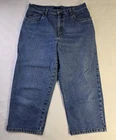 These Bill Blass Women's Mom Jeans Capri in a Medium Wash are a vintage-inspired 90's Y2K fashion piece. Made from 100% Cotton, they feature a solid design with a zip and button closure for comfort. In a size 14, these jeans are a Regular fit and boast classic Mom Capri style with a logo accent. Ideal for Summer, Fall, and Spring, these jeans offer both style and practicality with their pockets and comfortable fabric wash.