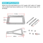 Universal Aluminum Billet Battery Tray Hold Down Trunk Relocation Box for Optima Race Racing Mount Red Yellow Blue Top 34 34/78 D34 D34/78 34M D34M 551181 Function: This battery tray is designed to securely mount your battery in your vehicle with sturdy base plates and hold-down plates and includes heavy duty 3/8" hardware. Compatibility: Compatible with Most Car and Truck batteries including the following optima sizes: Red top: 34, 34R, 34/78 & Yellow top: D34, D34/78 & Blue top: 34M, D34M (may fit other optima battery sizes) Wide Application: Overall dimensions of the base plate are 11.25" long by 8.5" wide. Bottom tray will accept batteries up to 10.5" Length x 6.95" width x 6.7" height with provided thread sleeves (batteries over 7.4" tall will require longer 3/8-16 all-thread). Package Included: 1 x Base Plate, 1 x Top Plate, 3 x All-Thread Hold Downs with Nuts, 3 x Thread Sleeves. Made of High Grade Billet Aluminum with high precision and strength, anti-rust and corrosion for great durability, providing a long lasting service time. Satisfaction Guarantee: Yoursme aims to provide the best service for our customer , if you're not 100% satisfied with our item, simply return it for a full refund in 30 days. We support 12 months’ Warranty. If you have any problems about our products, please feel free to contact us. Aircraft Grade Quality Made of aircraft grade alloy aluminum, solid and durable, electroplated to be rust and corrosion resistance for long term service. Precision CNC Cut CNC machined, all the holes and edges are smooth and precise and accuracy. Full Kit The whole battery tray include 1 base plate, 1 top plate, 3 all-thread hold downs with nuts, 3 thread sleeves.