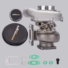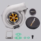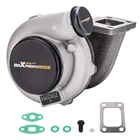 Application: Perfect for all 4/ 6 cyl 2.5L-3.0L engines Horse Power: Boost Horse Power up to 500BHP Notice:This model is a universal turbo. Please confirm whether there is enough space in your car to install this turbo before purchasing. Specification: Exhaust Inlet (Turbo Manifold) Flange: Standard T3 Flange Exhaust Outlet Flange: 4-Bolt Flange Turbine Trim: 74.2 Turbine Inducer Diameter: 64.8mm Turbine Exducer Diameter: 55.8mm Turbine A/R: 0.82 Compressor Trim: 48.1 Compressor Inducer Diameter: 52.7mm Compressor Exducer Diameter: 76mm Compressor A/R: 0.6 Oil Inlet: M12*1.25 & 2*M8*1.25 Oil Outlet: 2*M8*1.25 Water: M18*1.5 Wastegate: w/o Wastegate Thrust Bearing: 270 Degrees Turbo Type: Individual Bearing: Journal Bearing Cooling Type: Water + Oil Accessories: You will get exactly as shown in the picture above Package Size:30 x 28 x 24cm Package Weight: 8750g Features: 1. Turbine housing: Silicon-Molybdenum alloy steel - High temperature resistance, highly stable and ductile, corrosion and crack resistant, increases durability and reliability. 2. Turbine Wheel: K419 alloy - High temperature resistance, efficiently converts engine exhaust gasses into kinetic energy, resists thermal breakdown for smooth reliable operation. 3. Billet Compressor Wheel: Forged billet aluminum CNC machined compressor wheel - High efficiency, fast response, lower fuel consumption, smooth operation. 4. Oil Seal: High-speed steel oil seal ring - Abrasion and heat resistant, protects bearings, prevents oil leakage and smoking. Notice: * Replace, repair or reconnect air cleaner element per manufacturer's manual to avoid compressor wheel damage. * Make sure the oil drain line is lower than the turbo itself. * Gasoline car must install a water cooling device to avoid overheating. * Ensure exhaust outlet are well sealed by welding * The degree of modification of the universal turbo depends on your individual vehicle.Professional installation is highly recommended. * This Turbo is not vehicle specific. Please check the specifications and verify compatibility prior to placing your order. * Before installing the new turbocharger, the cause that led to the failure of the turbo must be analyzed and eliminated (e.g. insufficient oil supply, foreign bodies in the intake area, crankcase ventilation without function, etc.)! MXR04FXJT