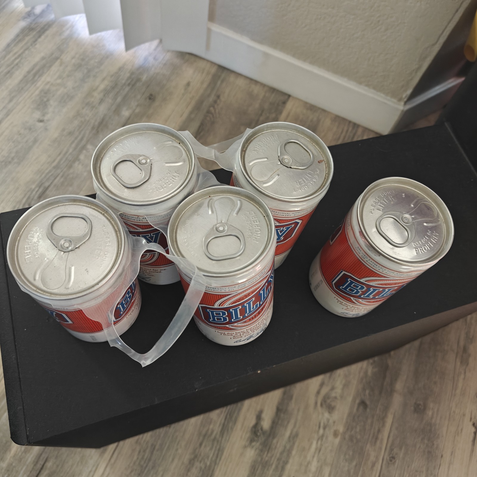 The product is a lot of five vintage Billy Beer cans, featuring the brand name Billy Carter. These 12 fl oz cans are part of the Breweriana theme, perfect for collectors of US beer memorabilia. The cans showcase a piece of history from Real Brewing and would make a unique addition to any collection of vintage beer items.