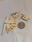 Add a touch of the tropics to your jewelry collection with this beautiful bird of paradise enamel painted acrylic or plastic brooch and screw clip back earrings set. The vibrant colors of yellow, orange, and green make this set a perfect choice for a sunny day out or a beach vacation. The set includes earrings that feature the same enchanting bird of paradise design as the brooch. The intricate details of the enamel work make this set a true work of art and a unique addition to any collection. The vintage feel of the set adds a touch of nostalgia and makes it perfect for those who love fairytales and fantasy. This set is a must-have for women who love to add a pop of color to their outfits and stand out from the crowd. Pre-owned in very good condition.