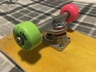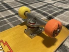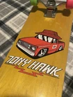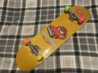 Birdhouse Skateboard Deck Tony Hawk Hut Shaped 8.50" x 32" in yellow. Complete board. This board I have had in my collection. it’s a decor piece that’s hung indoors on the wall. It’s never been outside and it’s never been ridden on. Everything is new. Has REDS bearings, 139 independent trucks, Bones Formula 100's V4 Party Pack 52 MM wheels, Black grip tape. And a vintage Powell Peralta sticker, that goes along great the graphic on the board. A great board from somebody that knows and appreciates the movie gleaming the cube. Please examine and look at the pictures closely. NO RETURNS!