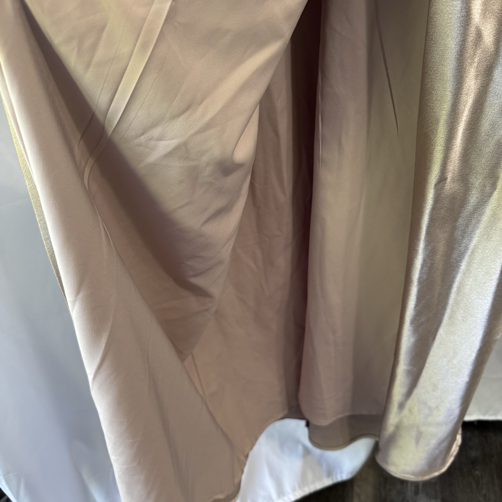 The Birdy Grey Mia Shiny Satin Convertible Dress in Champagne is a stunning option for bridesmaids, prom, or formal occasions. This long, sleeveless dress features an off the shoulder neckline and strappy sleeves, with a solid gold color and elegant satin fabric. The dress has a zip closure and convertible straps, making it versatile for different looks. Perfect for weddings, parties, or cocktails, this dress exudes a sense of sexy and classic style that is ideal for any season. Designed by Birdy Grey, this dress is a beautiful choice for any woman looking to make a statement at her next special event. Size: Small Width: 14" Length: 54" Condition: Pre-owned Please note: Width is the armpit to armpit measurement. Length is measured from the shoulder to bottom hem. All measurements were taken with the item laying flat. Ships from a smoke free home! Please see all photos for the exact item condition. Thanks for checking out my store! All items are shipped within two business days. D-55