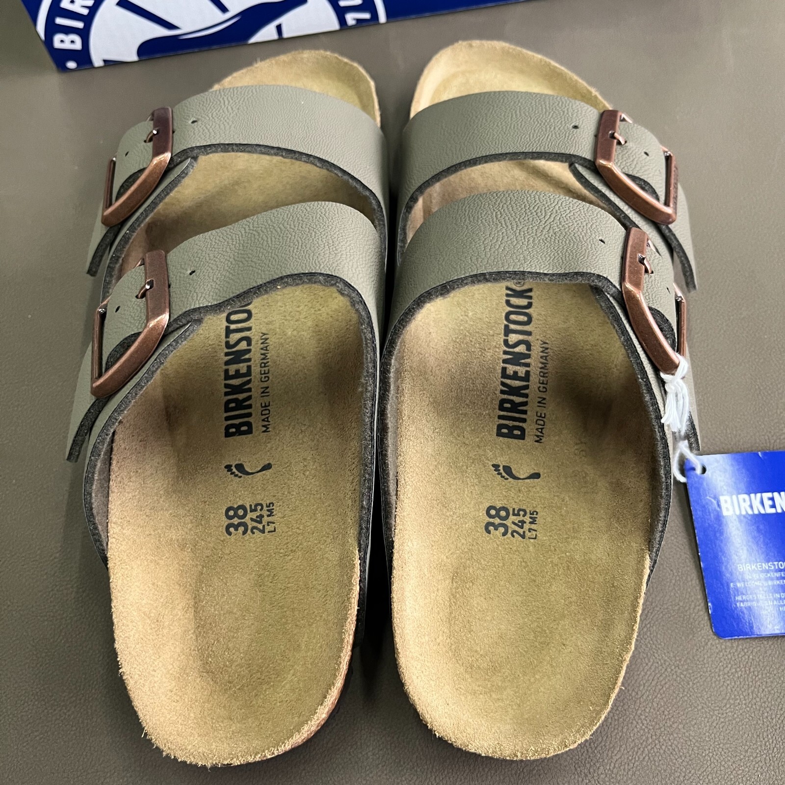 Birkenstock Arizona Birko-Flor Birkibuc Stone Leather Sandal Select Size Special feature: Soft footbed The soft footbed has an integrated latex foam cushion. So it offers excellent comfort from day one. Upper material: Birko-Flor® Insole: Suede Footbed material: Cork Outsole: EVA Size : Width:Medium/Narrow -Women's EU 37/US Women 6-6.5 EU 38/US Women 7-7.5 EU 39/US Women 8-8.5 EU 40/US Women 9-9.5 EU 41/US Women 10-10.5 Width:Regular/Wide -Men's EU 42/US Men 9-9.5 EU 43/US Men 10-10.5 EU 44/US Men 11-11.5 EU 45/US Men 12-12.5 Shipping We Are Always Working Hard to Ensure Your Package Arrives As Soon As Possible.Please Understand That Some Factors Like Weather,High Postal Traffic,and the Performance of Shipping Companies Are Outside of Our Control. We Ship the Products within1-2 Business Days. Most Items Are Delivered within3-6 Business Days. Returns We Offer a 30-day Retum Policy on ltems in Which You Are Not Completely Satisfied With. You Have the Option of a Full-refund or an Exchange of the ltem. Customer is Responsible for the the Retur Shipping Cost. Please Return It with the Original Package when Returning, We Do Not Accept a Retur of Physically Damaged Items. Feedback Then We Will Provide a Satisfactory Solution for You. We Are Making Efforts to Providing Better Products in Price and Quality, if You Feel Satisfied with Us, Please Leave Us a 5-star on the Detailed Seller Ratings, We'll Appreciate a Lot. If You Are Not Satisfied with the ltem or Its Condition,please Do Contact Us Before You Decide to Leave a Neutral or Negative, We Believe There Are Ways to Solve Any Problem.