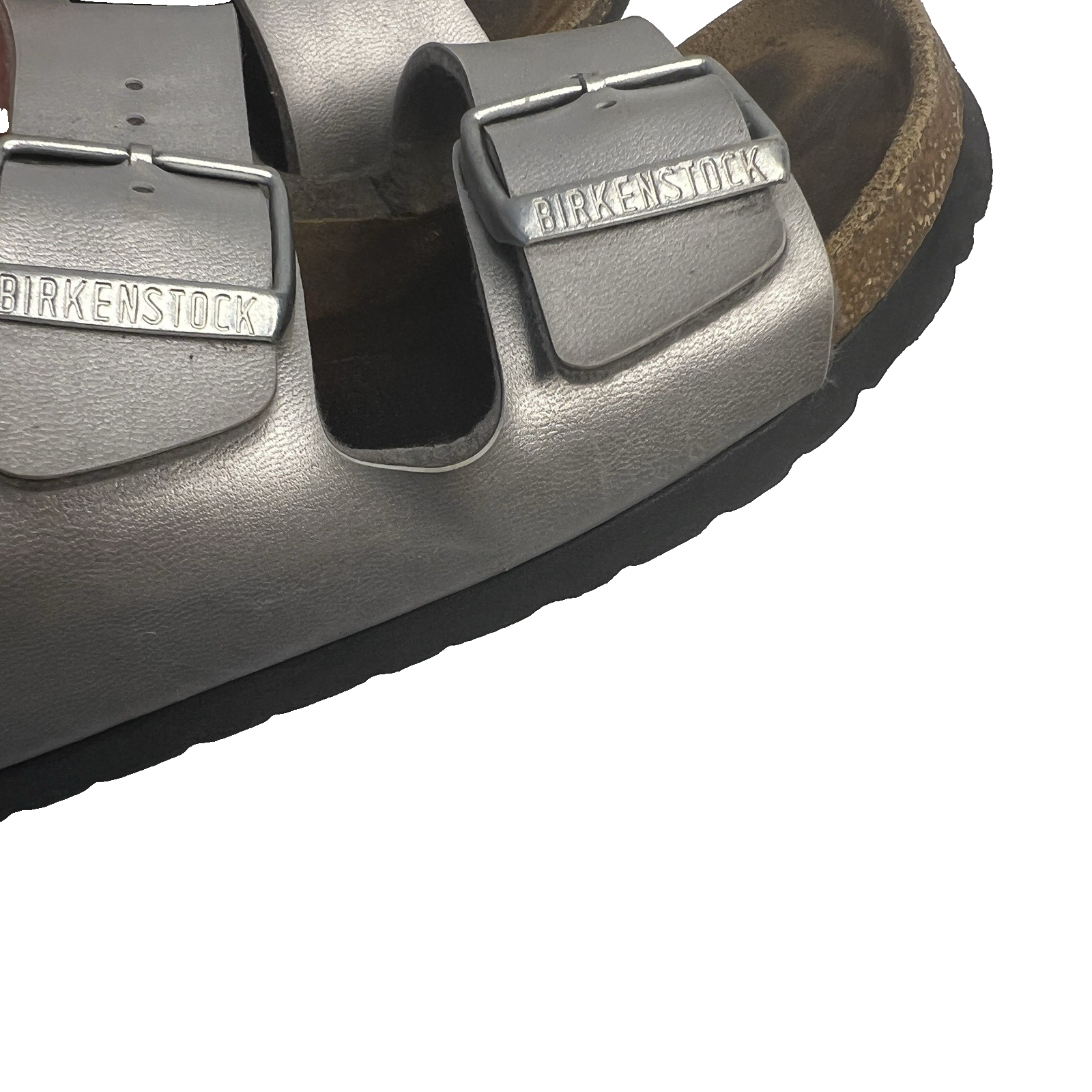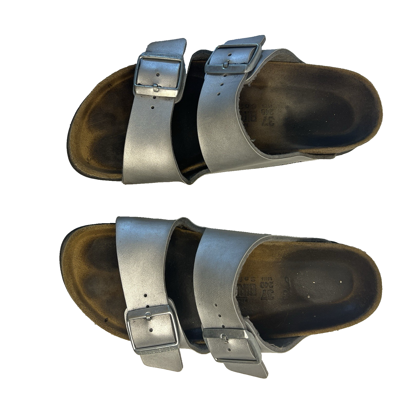 Birkenstock Arizona Shoes Women 37 Silver Double Strap Sandals Comfort Cork There are some markings to the shoe and wear to the footbed. Please view photos for condition.