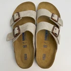 Birkenstock Womens Arizona Taupe Suede sandal Narrow/Wide Cork Sole EU37-45 Size EU37 US Women 6-6.5--US Men 4-4.5 EU38 US Women 7-7.5--US Men 5-5.5 EU39 US Women 8-8.5--US Men 6-6.5 EU40 US Women 9-9.5--US Men 7-7.5 EU41 US Women 10-10.5--US Men 8-8.5 EU42 US Women 11-11.5--US Men 9-9.5 EU43 US Women 12-12.5--US Men 10-10.5 EU44 US Women 13-13.5--US Men 11-11.5 EU45 US Women 14-14.5--US Men 12-12.5 Product Introduction Arizona sandal Featuring an additional foam layer for cushioning, the soft footbed offers extra comfort plus go-all-day support. The adjustable two-strap look comes in classic, velvety suede to make it a match for any season and every style. Condition: New with box Manufacturer: Birkenstock Size Origin: EU Cushioned BIRKENSTOCK soft footbed creates custom support with wear Suede footbed lining helps keep you comfortable EVA sole is flexible and lightweight Two adjustable straps with metal pin buckles Features Special feature: The soft footbed has an integrated latex foam cushion. So it offers excellent comfort Upper material: Suede Suede is a split leather with a napped finish. It has a velvety surface and is very soft to the touch. It also boasts a high moisture absorption capacity. Insole: Natural leather Footbed material: Cork Outsole: EVA EVA (ethylene vinyl acetate) is a high-quality, very light, elastic material with extremely good cushioning. Shipping We ship items within 1 business day of purchase. (The post office doesn't work on weekends)We offer free shipping to the lower 48 states. We are not responsible for taxes or duties for international shipments. Returns We accept returns 30 days after purchase, the item must be in the same condition as sent and in its original packaging. Any returns received used are subject to restocking fee unless the item is not as described.