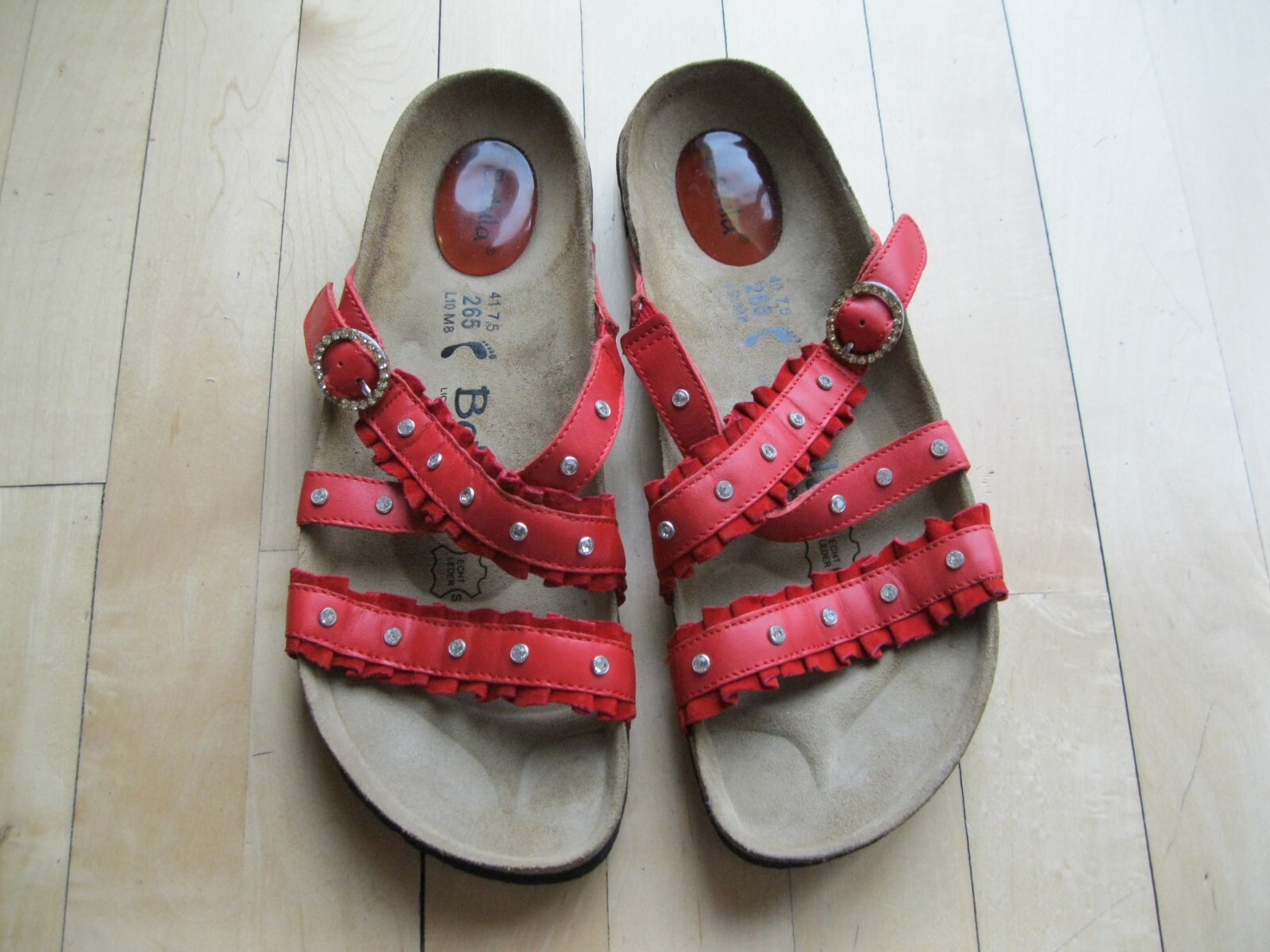 Birkenstock Betula Krystle Ruffle Rhinestone Studs Open Toe Sandals Red Women 11 Retails: $ Website Description: Gentle reminer, please c ontact me if there is ever an issue . If I don't know there is a problem, I can't fix it.