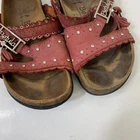Love these stylish Birkenstock sandals! The maroon color is gorgeous, and the studded details add the perfect touch of bling. They’re super comfortable and in great preowned condition—just a minor strap issue. Perfect for summer outings!