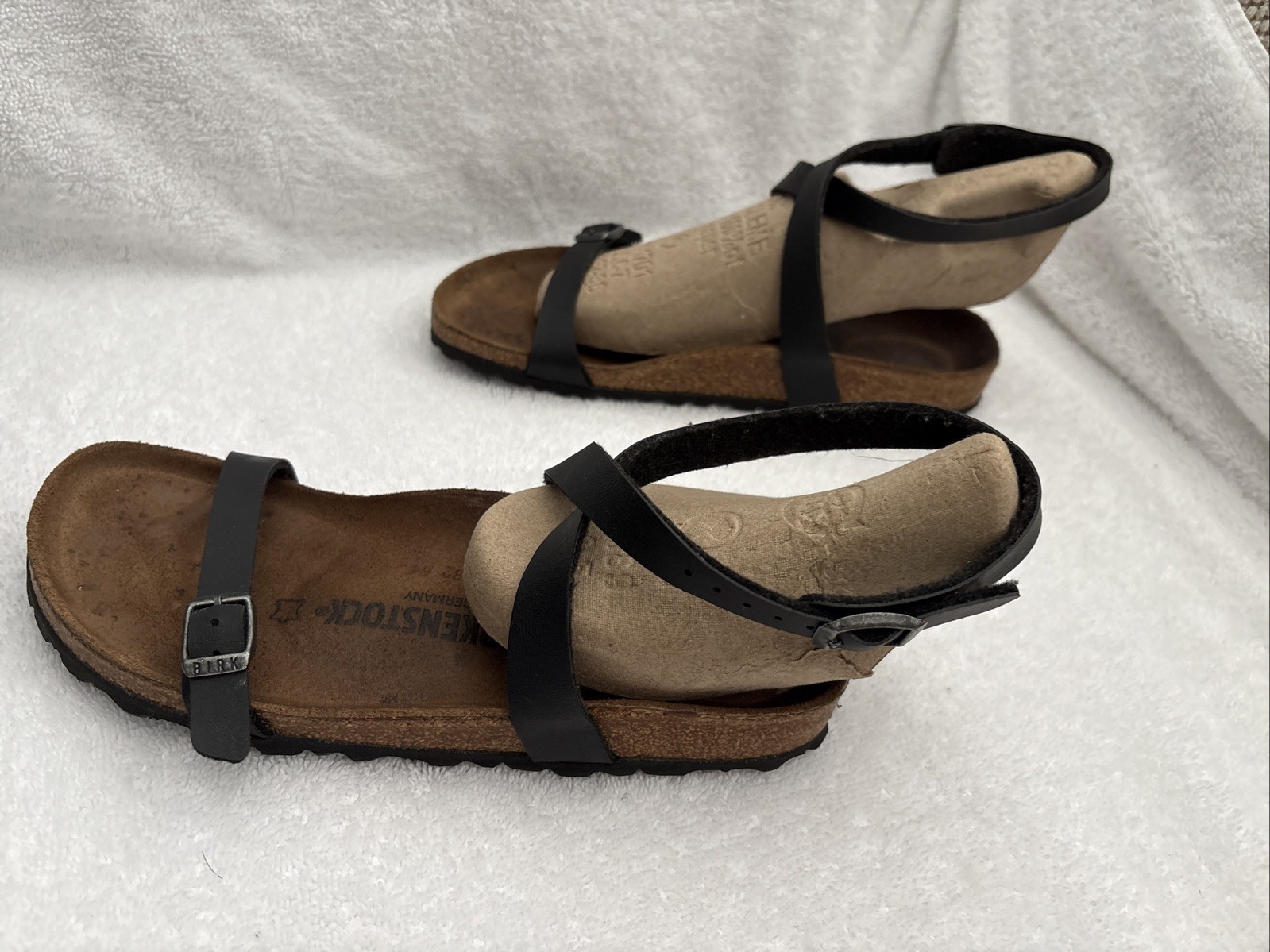 Excellent, like new slip on Clarks clogs, as pictured and described. Very attractive design and style. Insole very cushiony and supportive. Like the low rubber heel for stability and non-slippage. Well packaged and shipped in a timely manner. Good communication; recommend this seller.