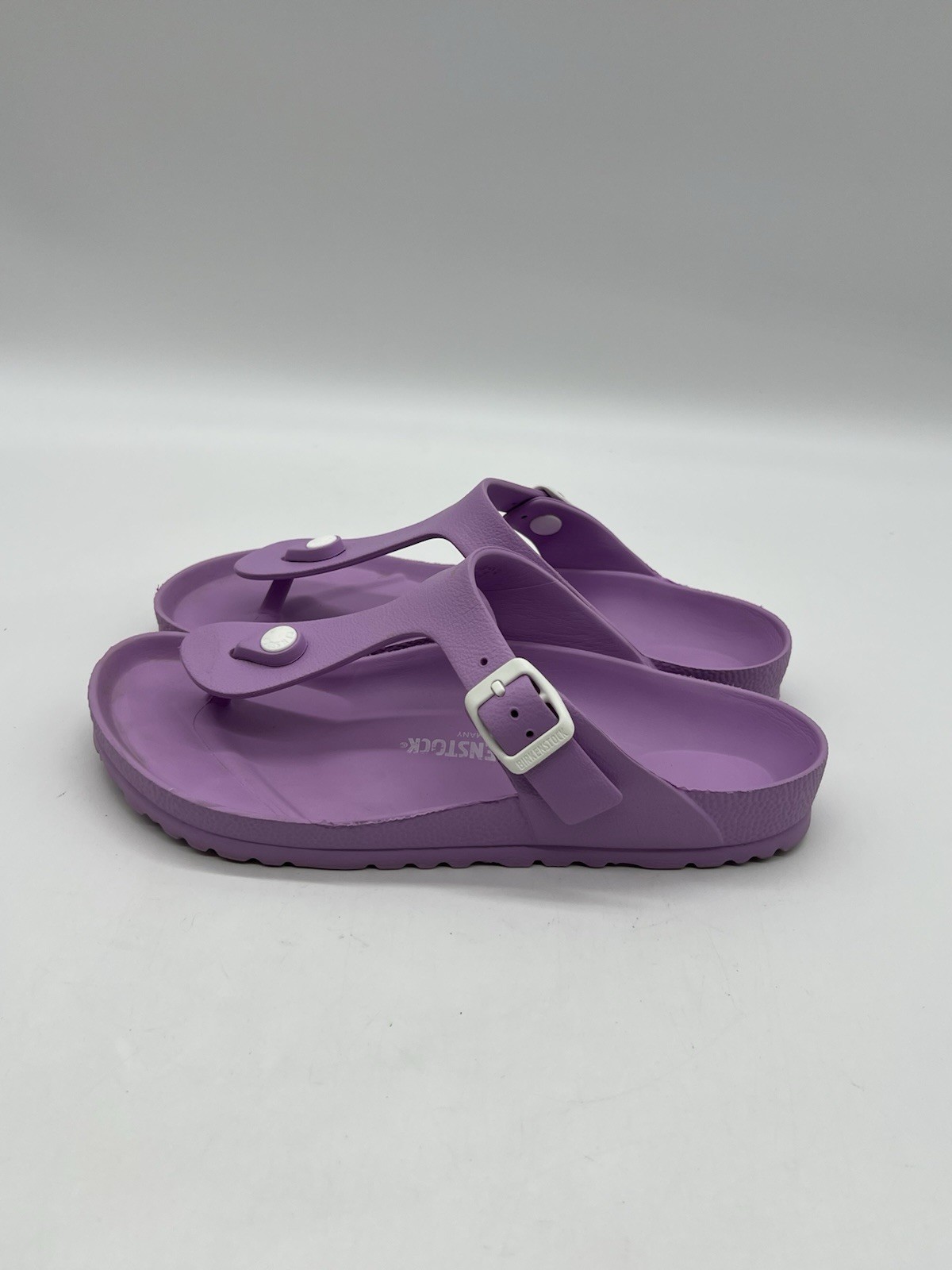 Birkenstock Gizeh EVA Women’s Size 7 Purple Fog Thong Sandal Shoes. Shoes are in used condition and have signs of wear but shoes are still in great condition. Upper material is in excellent condition and very clean , inside is clean and the soles are in great condition. Nice comfortable shoes for casual wear. Condition is pre-owned. Shipped with ups or usps priority mail. Sold as pictures. Thank you! Feel free to message me for any questions. Thank you