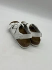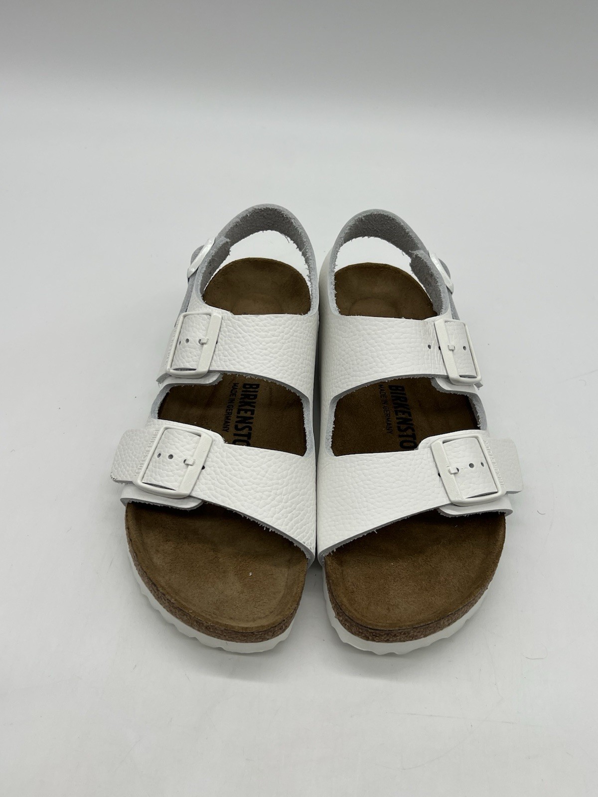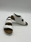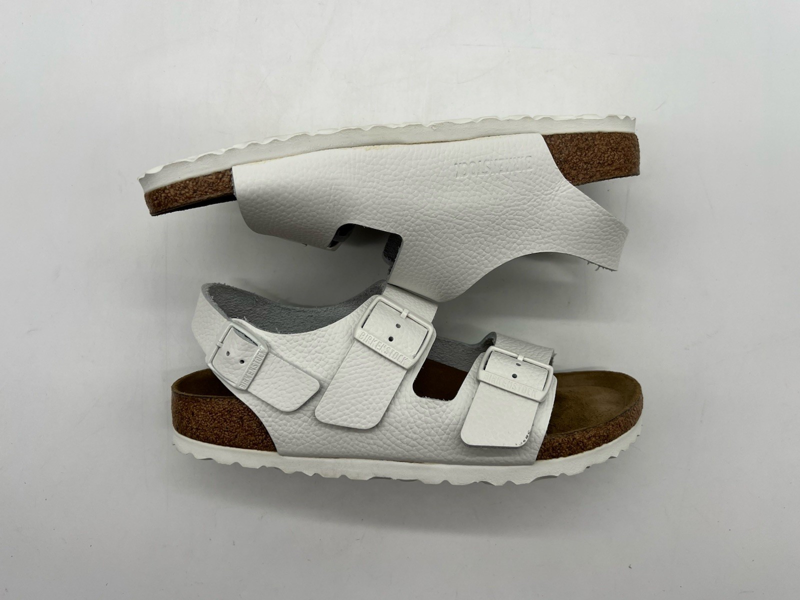 Birkenstock Milano Burke-Flor Women’s Sz 8 White Leather Ajustable Sandal Shoes. Shoes are in used condition but shoes are in excellent condition. Shoes were worn once. Upper leather is in excellent condition and very clean , inside is clean and the soles are in great condition. Nice comfortable shoes for casual wear. Condition is pre-owned. Shipped with ups or usps priority mail. Sold as pictures. Thank you! Feel free to message me for any questions. Thank you
