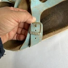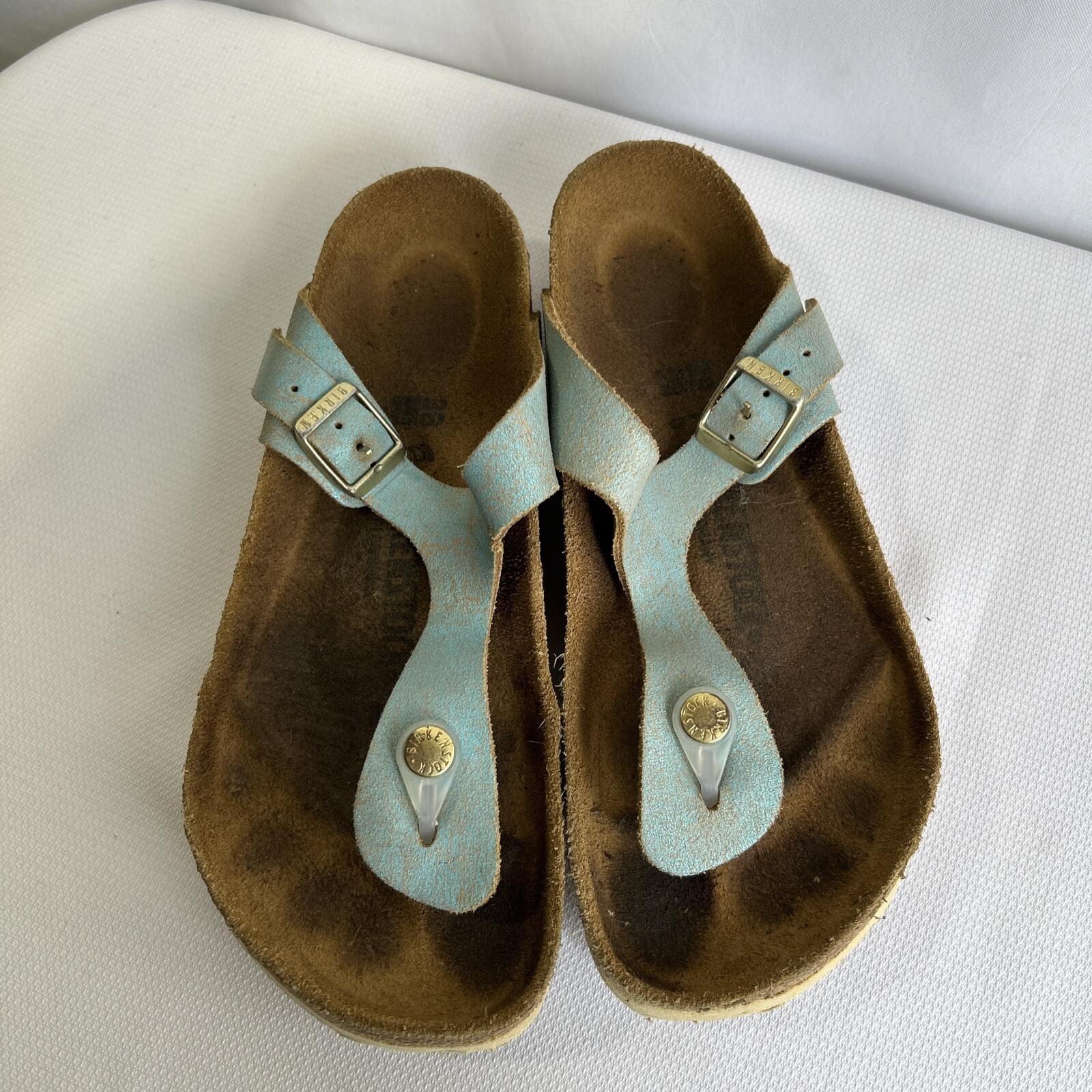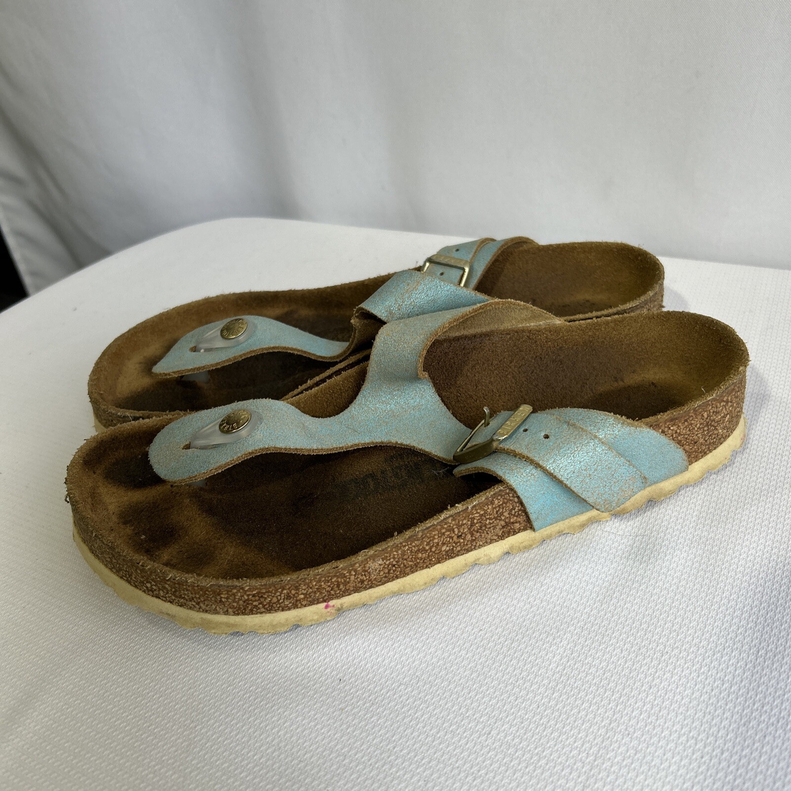 Birkenstock Sandals Gizeh Blue Washed Aqua Leather 38 7 7.5 Wide T Strap Thong See Pictures ***