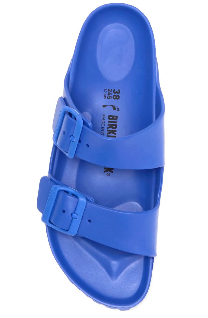 Birkenstock Women's Arizona Essentials Waterproof Slide Sandal** An iconic cushioned sandal is revised in a rubber-like texture with sleek adjustable straps designed to exercise foot and leg muscles while providing comfort. The contoured footbed absorbs shock and mimics the shape of a healthy foot, while pronounced medial and metatarsal arches support the instep and ball of your foot. Flat sole Adjustable straps with buckle closure Contoured footbed with arch support Waterproof Synthetic upper, lining and sole Made in Germany **Authenticity Guaranteed*** Item Condition: BRAND NEW !!