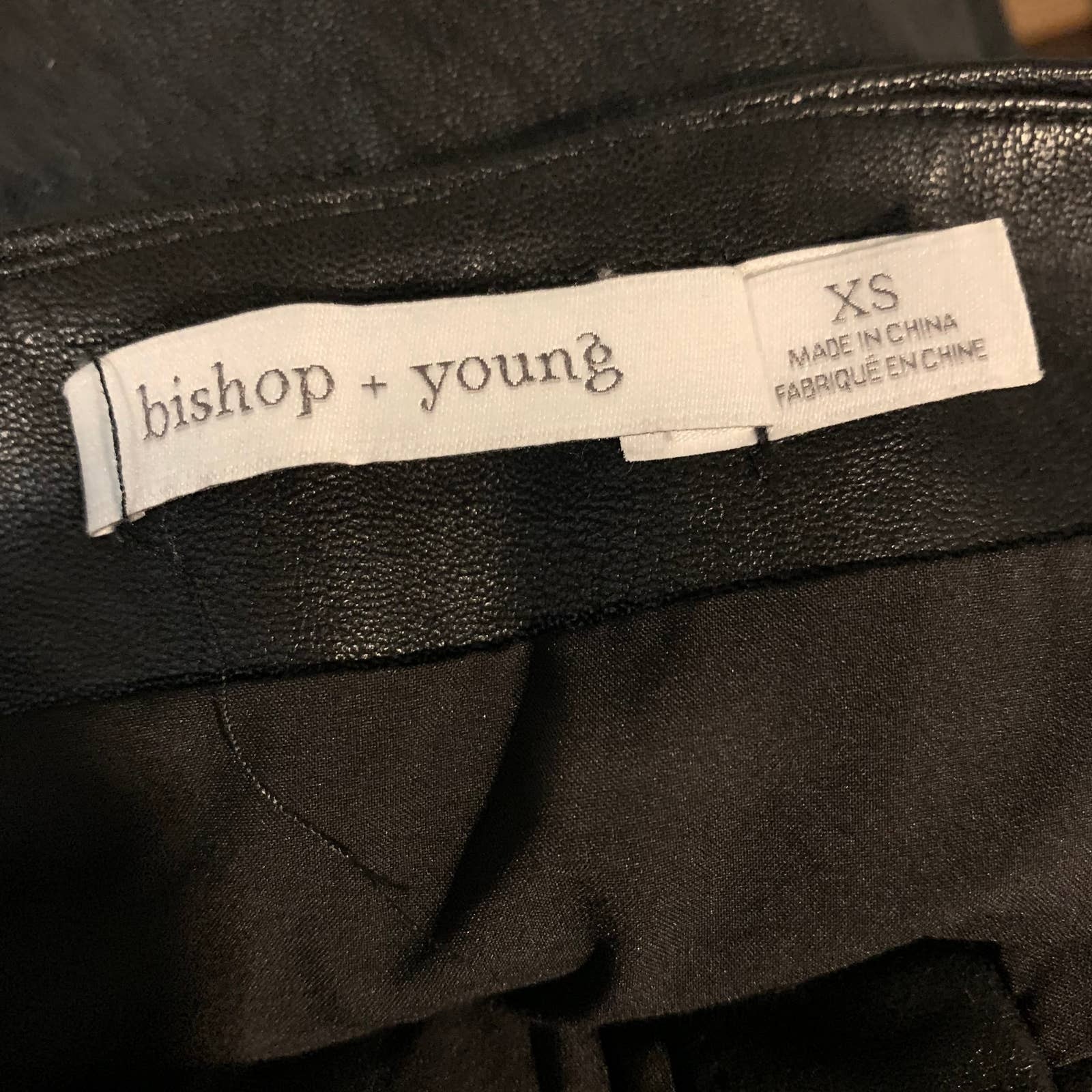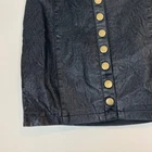 Bishop + Young Button Up Mini Skirt Black Faux Marbled Leather XS Extra Small Super cute mini skirt with gold button detail down front. EUC no flaws or signs of wear. Size XS. Waist: 12.75" across laid flat Length: 14.5" 111121 C28P AA1507