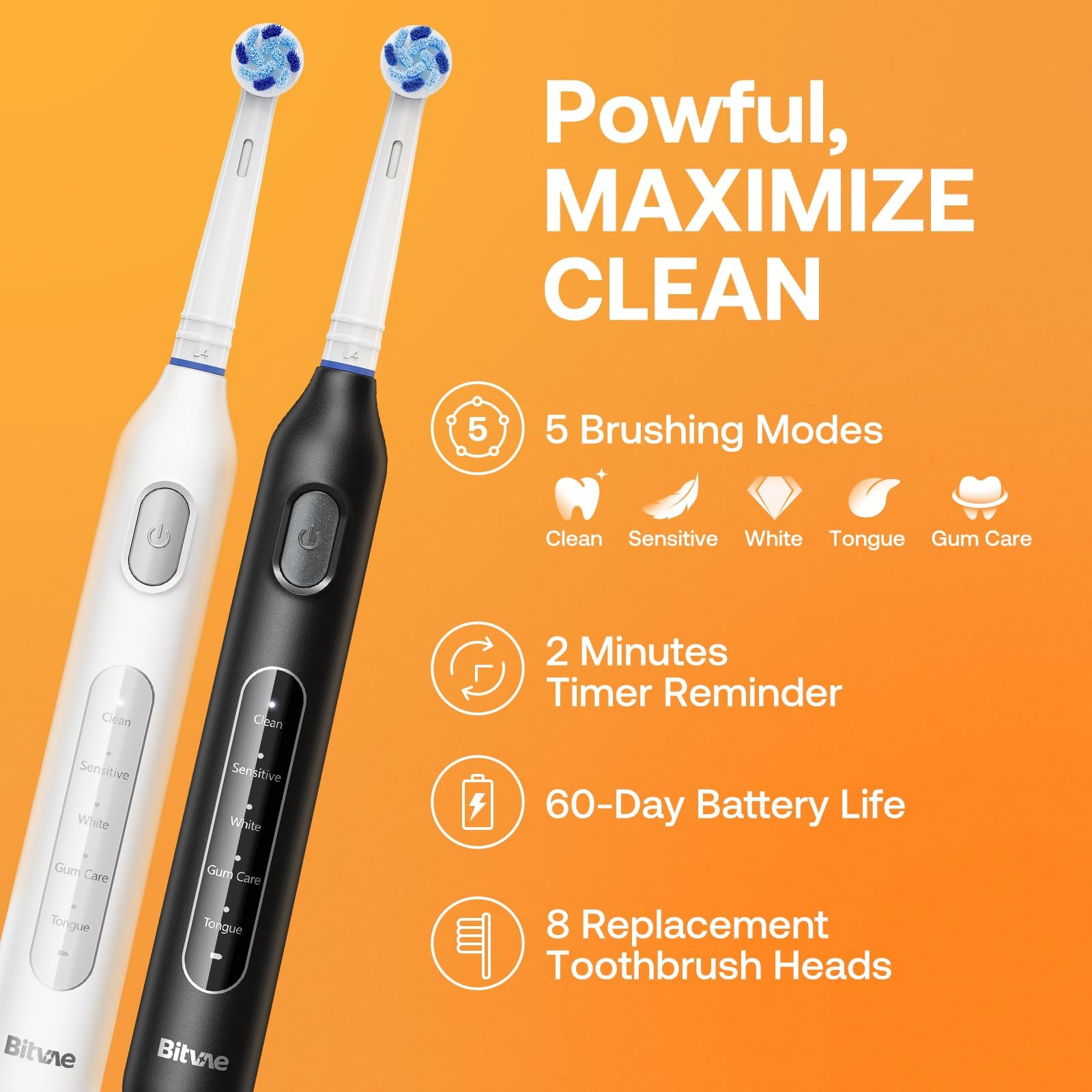 Tap here to read more about Bitvae Rotating Electric Toothbrush 2 Packs for Adults and Kids, 8 Brush Head... BUY WITH CONFIDENCE 100K+ Satisfied Buyers as your satisfaction is our top priority with easy returns, and dedicated support. FAST & RELIABLE SHIPPING All orders are processed quickly with reliable shipping partners. Most items ship within 24 hours. 20+ YEARS OF EXPERIENCE We pride ourselves on serving customers worldwide for over 20 years at lowest Possible Prices. Bitvae Rotating Electric Toothbrush 2 Packs for Adults and Kids, 8 Brush Head... Tap here to read more about Bitvae Rotating Electric Toothbrush 2 Packs for Adults and Kids, 8 Brush Head... Bitvae Rotating Electric Toothbrush 2 Packs for Adults and Kids, 8 Brush Heads 60-Day Battery Life, 5 Modes Power Toothbrush with 2-Minute Smart Timer, Black & White, R1 Superior Clean at a Dentist Level: Bitvae rechargeable electric toothbrush has a powerful motor, its rotating movements of the round brush head focus on cleaning each tooth and reaching areas that manual brushing might miss 8 Replacement Heads for 2 Years of Use: Say goodbye to pricey refills; This toothbrush is with 8 round-end bristle Heads; Bitvae rotary electric toothbrush are compatible with all Oral-B electric toothbrush handles and heads, except for iO and Sonic Gentle yet Effective Cleaning with 5 Modes: Clean, Sensitive, White, Gum Care, Tongue; From gentle cleaning to more intensive variable speed plaque removal to meet every family member's oral care needs Single Charge Lasts Up to 60 Days: This powerful electric toothbrush features a 3-hour quick-charge battery that lasts up to 60 days; It's perfect for travel, daily use, or for those who don't want the hassle of frequent recharging 2-Minute Smart Timer & IPX7 Waterproof: With a built-in timer that pulses every 30s, this electric toothbrush ensures thorough cleaning by guiding your brushing routine across all mouth quadrants; It's waterproof design allows for easy use in the bathroom Package Includes: 2 Bitvae R1 Toothbrush Handle, 8 Toothbrush Heads, 2 USB Cable (Adapter not included—please charge the toothbrush using a 5V-1A adapter), 1 Instruction Manual For your safety, keep the product away from water while charging. Always inspect the power cord for damage before use and ensure the charging port is completely dry. In the event the product falls into water, do not reach for it; simply unplug the charger immediately Item Specifics Included Components: Battery, Timer Package Type Name: Box Toothbrush Head Shape: Round Number Of Settings: 5 Number Of Pieces: 1 Model Name: R1 Age Range Description: Adult Item Package Quantity: 1 Bristle Material: Nylon Brand: Bitvae Target Audience: Unisex-Adults, Boys, Girls, Unisex-Kids Handle Material: Plastic About Us Payment Shipping Returns Welcome to Bixlife ! We are committed to providing high-quality products at competitive prices with exceptional customer service. Our mission is to make your shopping experience smooth, reliable, and worry-free. Every item we offer is carefully selected and shipped with care. Shop with confidence knowing your satisfaction is our top priority. Shop Smart. Shop Secure. Shop Bixlife! We only accept eBay Managed Payments . This allows you to securely pay with your preferred method, including major credit and debit cards, PayPal, Apple Pay, and Google Pay (where available). Payment is required at checkout to ensure fast and smooth order processing. Domestic Shipping Only We ship exclusively within the United States . No International Shipping We do not ship outside the USA at this time. Orders are processed and shipped promptly after payment is received. Tracking information will be provided once your order has been dispatched. We offer a 30-day return policy from the date of delivery. Items must be returned in their original condition and packaging . Buyers Remorse Returns : A 15% restocking fee will be applied. Return shipping costs are the responsibility of the buyer unless the item is defective or not as described. Refunds will be issued back to your original payment method once the return is processed. We hope you will love your purchase, however if you need to return it, we have a 60 day return policy. We hope you will love your purchase, however if you need to return it, we have a 60 day return policy. We hope you will love your purchase, however if you need to return it, we have a 60 day return policy. We hope you will love your purchase, however if you need to return it, we have a 60 day return policy. Other Deals Bitvae R2 Rotating Electric Toothbrush for Adults with 8 Brush Heads, 5 Modes... $54.78 Laifen Wave Electric Toothbrush, Oscillation Vibration Sonic Electric Toothb... $118.74 Laifen Wave Special Electric Toothbrush, New 2025 Version Oscillation Vibrat... $124.24 Tao Clean UV Sanitizing Sonic Toothbrush and Cleaning Station, Electric Tooth... $158.58 V-WHITE Ultrasonic U-Shaped Toothbrush for Teeth Whitening, Electric Toothbru... $56.14 Rtauys 2 Pack Electric Toothbrush for Adults - 2 Rechargeable Electric Toothb... $53.42 Add suggested items to your listings - Check it out on 3Dsellers.com eBay listing template by 3D sellers.com - Try for Free!