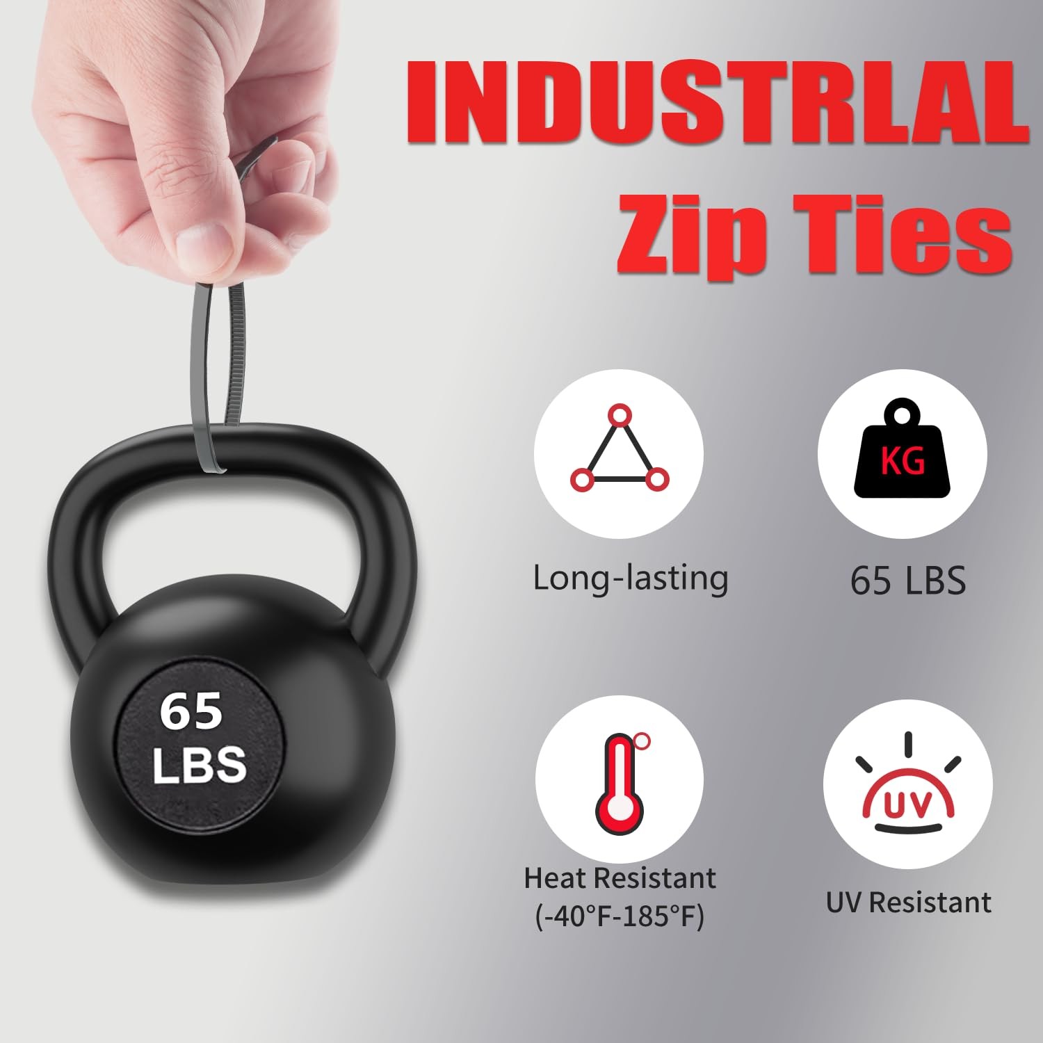 8 Inch Black Zip Ties (2500 Pack), 65 LBS Tensile Strength, Self-Locking Nylon PA66 UV Resistant Cable Ties for Indoor and Outdoor Use 【Details】 Dimensions: Quantity: 2500 PCS | Length: 12" | Width : 0.14" | Max Dia: 3.25" |Tensile Strength: 65lbs | With zip ties, you don't have to worry about The quality of the zip ties. 【High-quality material】Industrial-strength nylon 66 fireproof material is used, which can be used in the environment of -35℃ to 85℃, Features strong load ability, anti-aging, anti-acid, anti-corrosion and durability. 【Easy-using】You only arrange the things to be bundled, and then bend one side of the small saw blade inward, pass the arrow through the other part of the button, and easily pull it. 【Wide Application】Zip Ties is perfect for tying cables, plants, packages, etc.It is a good helper for family, office, garden, workshop and other places. 【After Sales】If You have any dissatisfaction with the product, We offer a 30-day refund/return policy. What Eletoo provide is not only good products, but also quality services. Try it, completely risk-free! Hurry up and click to add to the shopping cart!