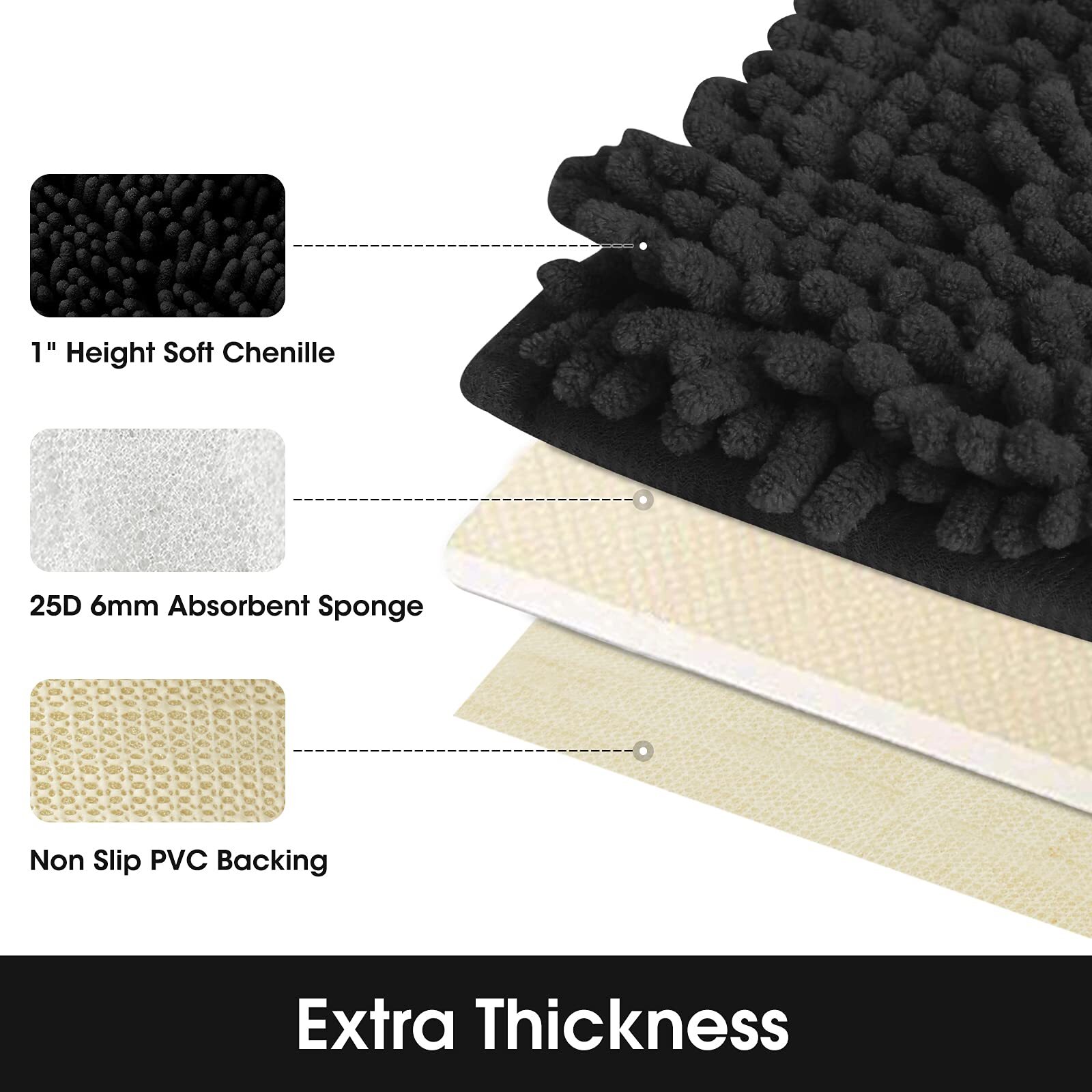 HOMEIDEAS Bathroom Rugs Black 20x32 inch, Ultra Soft and Absorbent Non-Slip Bath Rug, Thick Chenille Plush Machine Washable Shower Floor Carpet LUXURY and COMFORTABLE: HOMEIDEAS luxurious soft bathroom rug is constructed of premium thick, soft, and absorbent shaggy microfibers chenille, The high-density soft microfibers make your feet feel like sinking into a deep shag pile when stepping on it. NON-SLIP: The bottom of the bathroom mat is made of high-quality PVC material, keeping it stay in place without shifting and skidding. It is much stronger and durable for long-lasting use without getting peel off after several washes. Place rug on clean dry smooth floor only, ensure the bottom of the rug is dry and clean before use, water or dust under the rug can cause slipping. ULTRA ABSORBENT: These upgraded shag rugs can soak up the water efficiently with high-pile, thick Chenille fabric, and lock the moisture in the carpet to keep your feet dry and warm after the shower or bath. Perfect for the bathroom (tub-side, shower room, front of sink), bedroom, kitchen, and living room. EASY CARE: Machine wash on cold with mild detergent. Use only non-chlorine bleach when needed, hang to dry, or air dry flat. Do not Bleach. MORE SIZES: HOMEIDEAS bathroom rugs come in different sizes to fit every part of your home! SHIPPING Domestic Buyers - We have confidence in our products, but if you are not fully satisfied please contact us within 30 days of purchase and you will get full refund. - We ship within 3 business days of payment, usually sooner - We offer FREE shipping on all orders! - We only ship to the lower 48 states, no APO/FPO addresses or PO Boxes allowed International buyers – please note: Import duties, taxes, and charges aren't included in the item price or postage cost. These charges are the buyer's responsibility. - Please check with your country's customs office to determine what these additional costs will be prior to bidding or buying. * Order Cancellation Policy ** You can return a product for up to 30 days from the date you purchased it. 1. The seller reserves the right to cancel the special case only due to eBay cancellation fee. 2. The decision of seller is the final. 3. The seller will respond to the cancellation request within 2 business days. Please wait for the result of cancellation. 4. In case the cancellation is not completed by some reasons, the buyer can follow the options below to get the refund. 4.1 The buyer can reject the item when it arrives. 4.2 The buyer can send the item back to the seller within 30 days If the buyer receives item (USA Shipment ONLY). The seller will provide the FREE return label to the buyer when the buyer opens " Return Item" case on eBay by using the reason as "Change my mind" ONLY. 5. When buyer has placed the order. The order will be processed and completed by automatic warehouse system within 5 minutes. In case that buyer sends the cancellation request after 5 minutes of placing the order, the request will be rejected. **Sending direct message to cancel the order is not allowed for every case.* Return Policy For the return case - If buyer would like to return the items for refund or replacement, please CONTACT SELLER to receive the free return label from seller. The refund or replacement will be processed with the tracking number of return label which is provided by seller only. The other ways of return which are not approved by seller will not be processed for the refund or replacement.