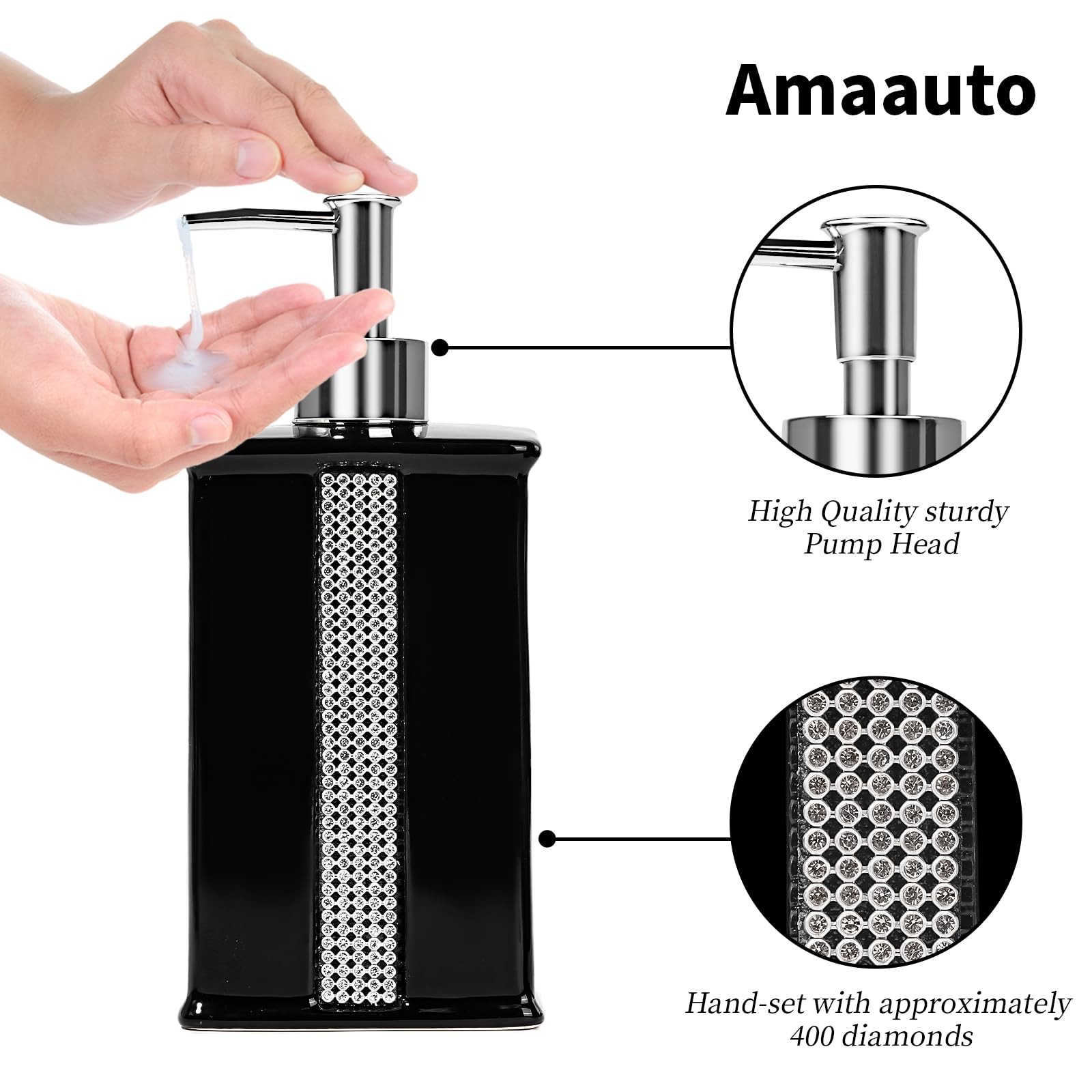 Introducing our Black Ceramic Soap Dispenser Bathroom Set Accessories Four-Piece Set, a perfect combination of style and functionality to elevate your bathroom decor. This set includes a soap dispenser, along with three coordinating accessories, all crafted from high-quality ceramic. This set adds a touch of modern elegance to any bathroom. The soap dispenser features a convenient pump mechanism for easy dispensing of your favorite liquid soap or lotion, while the additional accessories provide practical storage solutions for toothbrushes, toothpaste, cotton swabs, and more. 【Ceramic Bathroom Accessories Set】: Bathroom counter set includes a soap dispenser, a soap dish and 2 bathroom toothbrush holder. Bathroom vanity set is perfect for organizing your bathroom essentials. It will add stlysih and simple style to your bathroom 【Black Bathroom Accessories Set】: Crafted from premium ceramic with a unique hand-set masonry, the bathroom accessories is lead-free and non-toxic, The stainless steel pump head prevents rust and corrosion, handmade to make it look more sophisticated 【Organize and Durable】: Bathroom vanity set without odors is suitable for your family, The refillable soap dispenser is easy to replace liquid, hollow design soap dish can keep soap dry. The tumblers can put tootbrush, bath salts, cotton balls, etc 【Versatile Use】: The bathroom soap dispenser set can elevate your bathroom decoration, Bathroom accessories sets complete is ideal for bathroom, apartment, Spa, countertop, sink, It blends sleek and classy looks, making your countertop clean and elegant 【Easy to Clean】: The bath accessories set is easy to clean with soapy water or damp clothes to restore cleanliness, 4 piece bathroom set can create a complete and unified bathroom style, They also will optimize space to keep countertop clean and neat