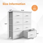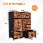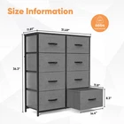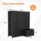 Features: 【Versatile Storage Tower】 Keep your space neat and organized with this multifunctional fabric dresser. It's a perfect fit for bedrooms, nurseries, playrooms, and entryways, and pairs seamlessly with storage organizers. 【Spacious Storage Solution】 With 8 deep foldable drawers, this dresser offers limitless possibilities for organization. The wooden top provides a convenient surface for everyday essentials like lamps, clocks, and glasses, ensuring easy access. 【Durable and Reliable】 Built with a sturdy steel frame and a water-resistant wood top, this dresser provides stable support and guarantees long-lasting use. The 4 adjustable plastic feet protect your floors from scratches and ensure stability, even on uneven surfaces. 【Safety as Priority】 Rest easy knowing this storage chest is equipped with anti-tipping accessories, making it safe to place anywhere. The breathable and non-toxic non-woven synthetic fabric is suitable for users of all ages. Overall Dimensions: Measuring 31.5" L x 11.8" W x 35.8" H, this drawer tower comes with detailed instructions and all necessary hardware for easy assembly and disassembly. Package include: 1 set of Black 8 Drawers Dresser