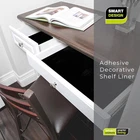 This shelf liner is a game-changer! The adhesive is strong but easy to reposition, and the matte black finish looks sleek in any space. Six rolls give plenty of coverage—perfect for lining drawers, shelves, and cabinets. It stays put without peeling and wipes clean effortlessly. Great quality for the price, and it instantly makes everything look more polished. Highly recommend for anyone wanting to organize with style!