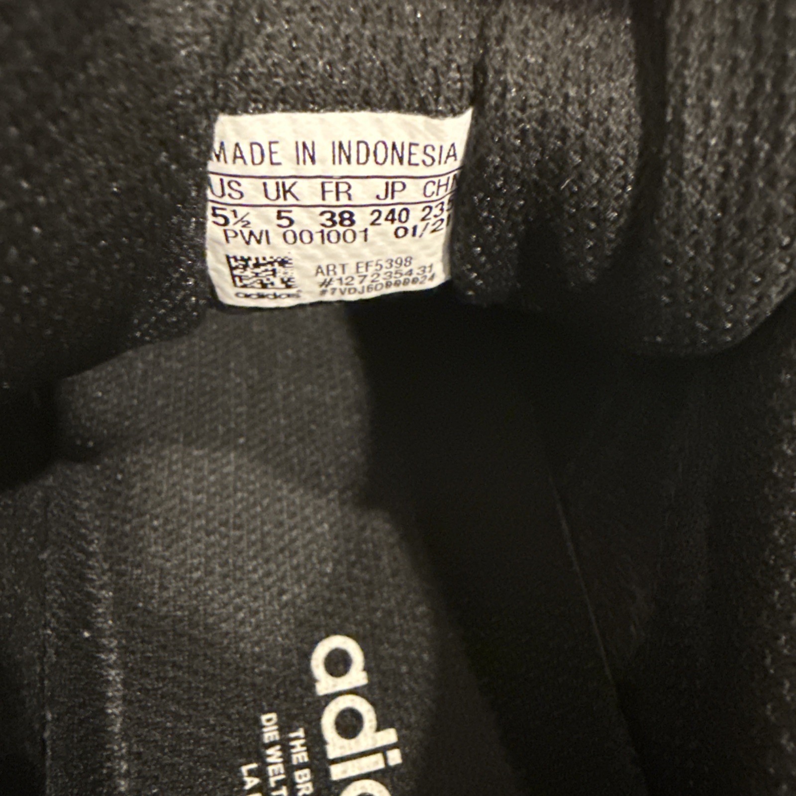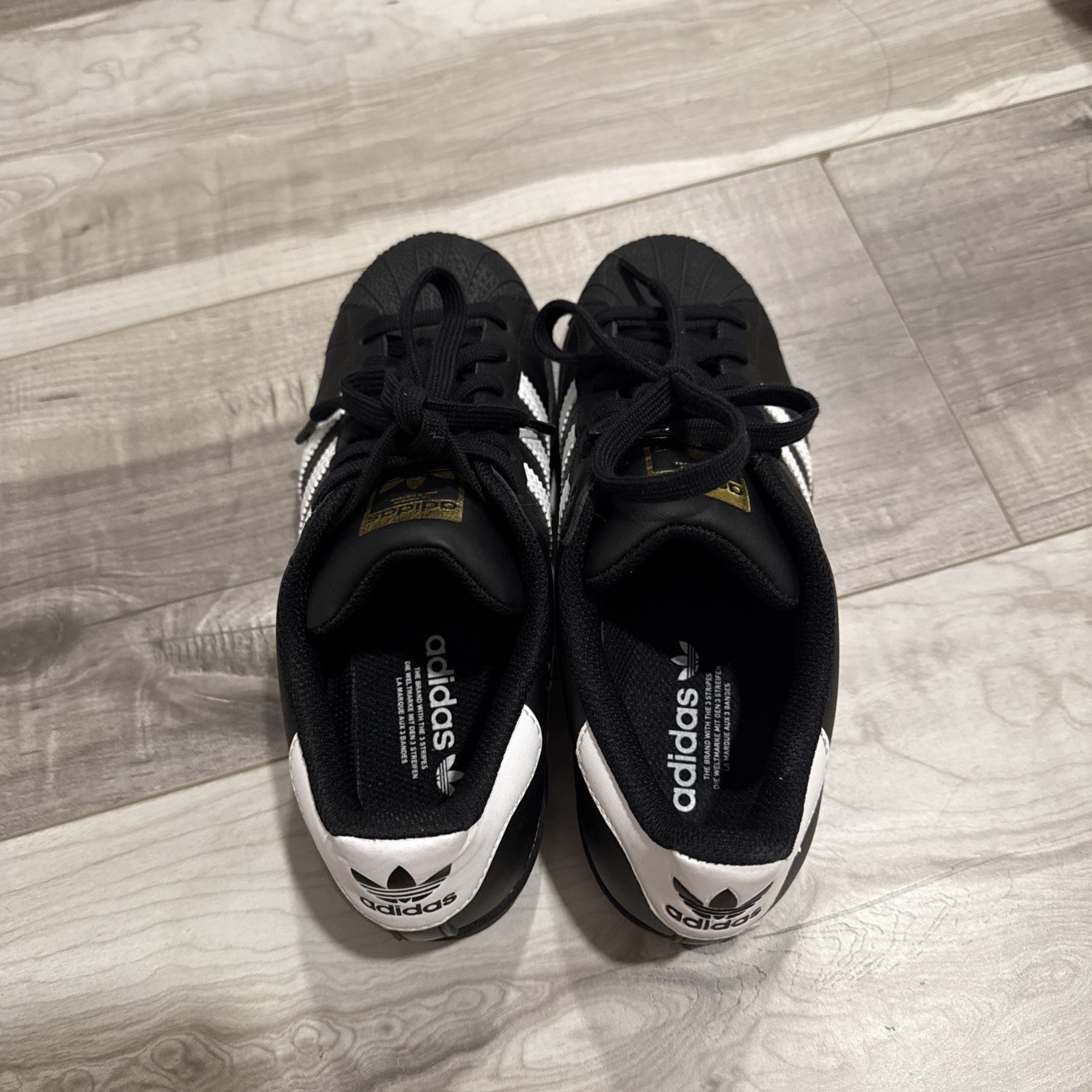 Adidas superstar black with box , 90% brand new, the left shoe is 5.5 and right shoe is 5. but they fit the same , it doesn’t look different at all!