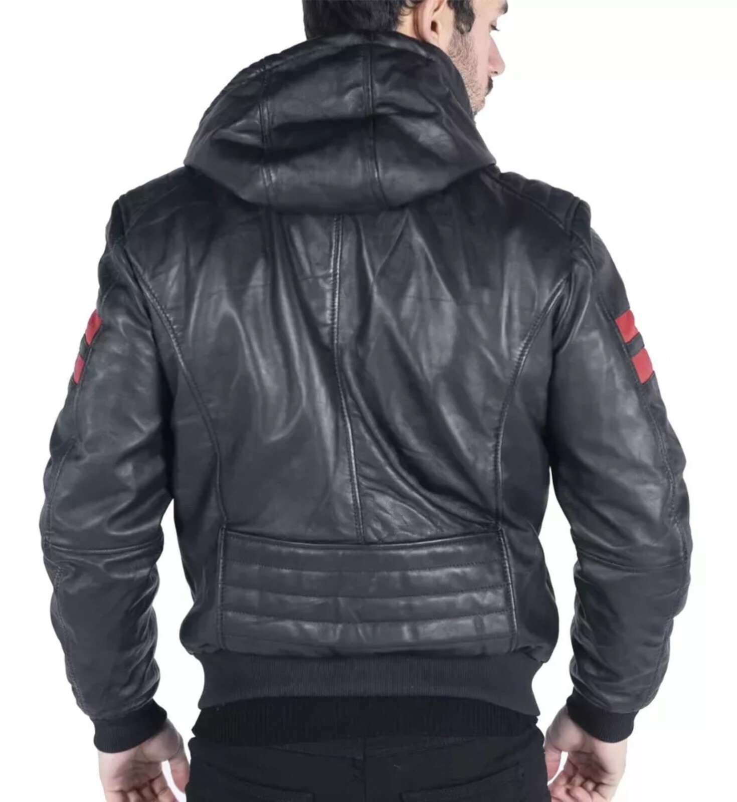 🖤 BLACK LEATHER BOMBER JACKET MEN’S RETRO SLIM‑FIT HOODED BIKER COAT Street‑Ready, Retro Cool Slide into this sleek black bomber jacket and bring instant attitude to any ride or night out. Its sharp slim‑fit cut , detachable hood, and supple leather deliver the perfect mix of retro bomber style , practical biker jacket toughness, and all‑weather versatility. If you’ve been searching for a men’s leather jacket with hood that works on the bike and off it, this is your new go‑to. 🔧 Specifications Material: 100 % Premium High‑Quality Sheepskin Leather Color: Jet black, lightly waxed for subtle sheen Fit: Streamlined slim silhouette—hugged but comfortable Hood: Removable cotton hood with drawcord (street or pure‑biker look) Lining: Soft breathable polyester for everyday ease Front Closure: Heavy‑duty YKK zipper Collar: Rib‑knit bomber collar when hood removed Cuffs & Hem: Elastic rib knit to lock out wind Pockets: 2 side zip pockets • 1 sleeve zip pocket • 1 inner pocket Style Tags: black bomber jacket | slim‑fit leather coat | hooded biker jacket | retro leather bomber 📏 Size & Fit Standard sizes S–3XL • Custom tailoring available. 👉 Measure chest before ordering for the best slim fit. 🚚 Shipping Express DHL / UPS / FedEx – delivered worldwide in 2–3 business days . ✅ Confirm address at checkout to avoid delays. 💯 Money‑Back Promise 30‑day hassle‑free returns • full refund if not 100 % happy. 🌟 Feedback Love your new jacket? Drop a quick 5‑star review ! Need help? Message us—responses in 15 minutes during business hours. 🔥 Zip up, hood on, ride out—claim this retro black leather bomber today!