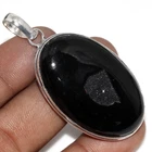 Black Botswana Druzy 925 Silver Plated Gemstone Handmade Pendant 2.3" JW