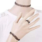 3pcs Black Choker Tattoo Necklace Set Retro Vintage Stretch Bracelet Ring DESCRIPTION 3pcs Black Choker Tattoo Necklace Set Retro Vintage Stretch Bracelet Ring Lace This comes in 3 set: 1 x 20mm wide Necklace 1 x 20mm Bracelet 1 x 12mm ring Specifications: Item Type: Necklaces Color: Black Chain Type: Link Chain Shape\pattern: Round Length: Stretch Fit, Adjustable Style: Tattoo Choker Necklaces Necklace Type: Chokers Necklaces Gender: Female Occasion: Party, Anniversary, Shopping, Wedding, Gift Descriptions: This Black Choker Necklace is worn around the neck and this is made of plastic and this is for a high fashion accessory Great vintage stylish and fashionable look, use the quality low-cost choker as a bracelet or a necklace to create a look all your friends will be envious of This is worn by Women, Ladies, and Girls for all occasion as concert, anniversary, engagement, party, meeting, dating, wedding, and daily wear This fits all size, and it is stretchable to some extent and can be a perfect gift for your loved ones Please note that due to differences in lighting conditions and digital screens, the color tones in the images might appear slightly different from the actual product