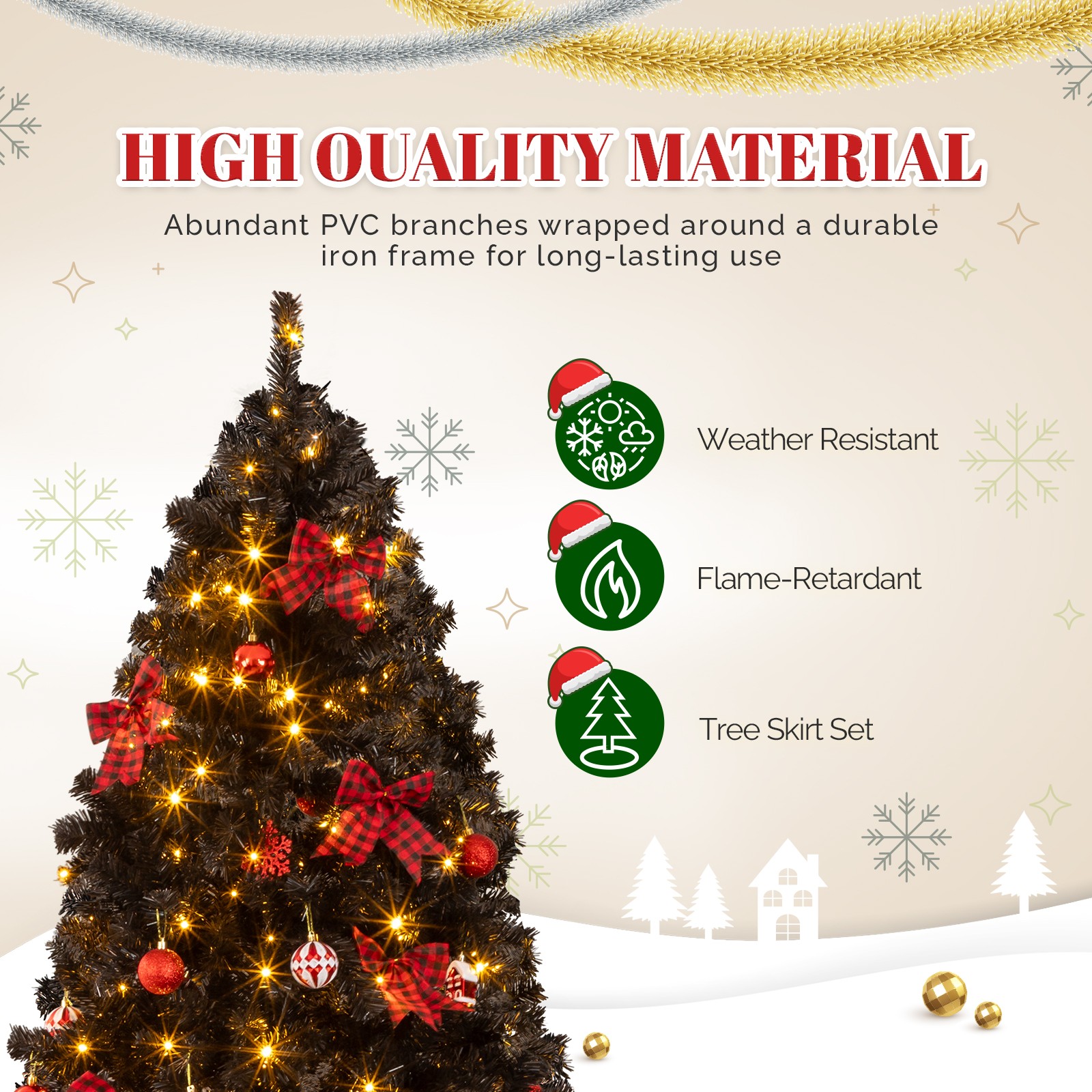 listing template VISIT OUR STORE SIGH UP FOR EMAIL Black Christmas Tree 7.5FT w/ Lights, Skirt, Ornaments In/Outdoor Holiday Decor 7.5 FT Artificial Christmas Tree with DIY 350 Warm White LED Lights, Hinged Xmas Pine Tree with Tree Skirt and Holiday Ornaments for Holiday Party Office Home, Black Tree & Red Decor Intro ductions: Create a magical holiday atmosphere in your home with this stunning Christmas tree. Designed to capture the beauty of the season, this tree brings warmth and joy to any space. With its realistic branches and sparkling lights, it offers a perfect canvas for your festive decorations. Whether you prefer a minimalist look or a lavish display, this tree sets the stage for your holiday celebrations, making it a timeless addition to your home for many seasons to come. Easy to set up and built to last, it's the ideal centerpiece for your holiday décor. Features: 1. Eye Catching Color: The tree's distinct black color adds a unique and modern twist to traditional holiday decorations. This bold color choice not only creates a stunning visual contrast but also enhances the festive atmosphere, making your ornaments pop against the pristine black background. 2. DIY Fairy Lights with 8 Lighting Modes: Unleash your creativity with the versatile string lights that can be effortlessly wrapped around the tree in any shape you desire. Featuring warm white light and 8 dynamic lighting modes, you can easily customize the ambiance to suit your mood or occasion, all with the convenience of the included remote control. 3. Full and Lush Appearance: The tree's abundant branches create a full, dense look that mimics the natural beauty of a real pine tree, making it a stunning centerpiece for your holiday décor. Whether placed in your living room, entryway, or any other space, this tree will captivate your guests and bring the joyous spirit of the season into your home. 4. Built to Last: Crafted from premium quality, flame-retardant PVC, this tree is built to last for many holiday seasons. The sturdy, thick branches are capable of holding your Christmas ornaments, while the reinforced metal stand ensures that your tree remains stable and secure throughout the season. 5. Easy Setup: The hinged branches automatically drop into place, and assembly takes just three simple steps. Once setup, simply fluff the branches for a full, lush look that's ready for your favorite decorations. Then you can decorate the tree with your family using the included ornaments to create a personalized holiday display. Specifications: 1. Overall Height: 7.5 FT 2. Branch Tips: 1200 3. Color: Black 4. Branch Material: PVC 5. Number of LED Lights: 350 6. LED Light Color: Warm White Light 7. LED Light Modes: 8 Modes 8. Ornaments: Red-themed ornaments 9. Tree Skirt: Included Package Includes: 1 x Christmas Tree 1 x Remote Control 1 x Set of ornaments 1 x Tree Skirt 1 x String Lights You might like this more>> Set of 10 Plastic Folding Chairs Wedding Party Event Chair $135.99 Makeup Case Cosmetics Organizer 2 Small & 5 Large $23.65 12-Batten 4 Tier Storage Organizer Shoes Tower $24.59 2PC Patio Rattan Wicker Chair Sofa Patio Garden Furniture $99.99 High Gloss TV Unit Cabinet Stand with LED Lights $132.99 Commercial Heavy Duty Clothing Garment Rolling Collapsible $53.99 Shipping Policy 1. Ship worldwide from New Jersey by reliable shipping companies -- USPS, UPS, FEDEX, DHL, etc., and only to VERIFIED PAYPAL ADDRESS. Transport Delivery ETA. Package handling only takes 1 business day at our warehouse, so please make sure entering correct payment and shipping information before checking out. Once your payment is completed, we are not going to accept any more changes to your order. 2. International Buyers – Please Note: a. Import duties, taxes and charges are not included in the item price or shipping charges. These charges are the buyer's responsibility. b. Please check with your country's customs office to determine what these additional costs will be prior to bidding/buying. 3. Please check your shipping address carefully before checkout, it can't be changed if order completed. 4. Orders placed on weekend will be shipped within 2 days.Notification of shipment with tracking number will be sent to buyers. 5. Standard shipping: 2-7 business days Expedited Shipping: 2-3 business days One-day Shipping: 1 business day International shipping: Varies 6.Ship within 1 business day once payment completed. Notification of shipment with tracking No. will be sent to buyer. 7.We offer discounts for combine shipping. Please contact us first if you need combine shipping, and an invoice with discount will be sent to you. 8.Please allow 5 business days for delivery to US destinations on any eBay orders and 14 business days for delivery to any International destinations. We highly recommend our buyer choose priority/expess mail for international delivery which is much more stable. Return Policies 1. Refunds given only if item DOA and cannot be replaced via PAYPAL . If so, Please contact us with 5 days since you receive the item and and return to us within 30 days from the delivery date for exchange or refund. 2. If you need return, please contact our customer service representative, let us know the detailed problem and send us some pictures for confirmation. Payment Payment should be sent within 8(EIGHT) days of auction closing. Feedback If you are dissatisfied for any reason, please do not be quick to leave negative/neutral feedback. We work hard to make sure EVERY CUSTOMER 100% SATISFIED and resolve any problem for you. Work Time Work Time: Monday to Saturday About Us | Newsletter| Feedback| Contact Us Copyright © 2021 ECMonster. All rights reserved. 无标题文档 Black Christmas Tree 7.5FT w/ Lights, Skirt, Ornaments In/Outdoor Holiday Decor 7.5 FT Artificial Christmas Tree with DIY 350 Warm White LED Lights, Hinged Xmas Pine Tree with Tree Skirt and Holiday Ornaments for Holiday Party Office Home, Black Tree & Red Decor Intro duction