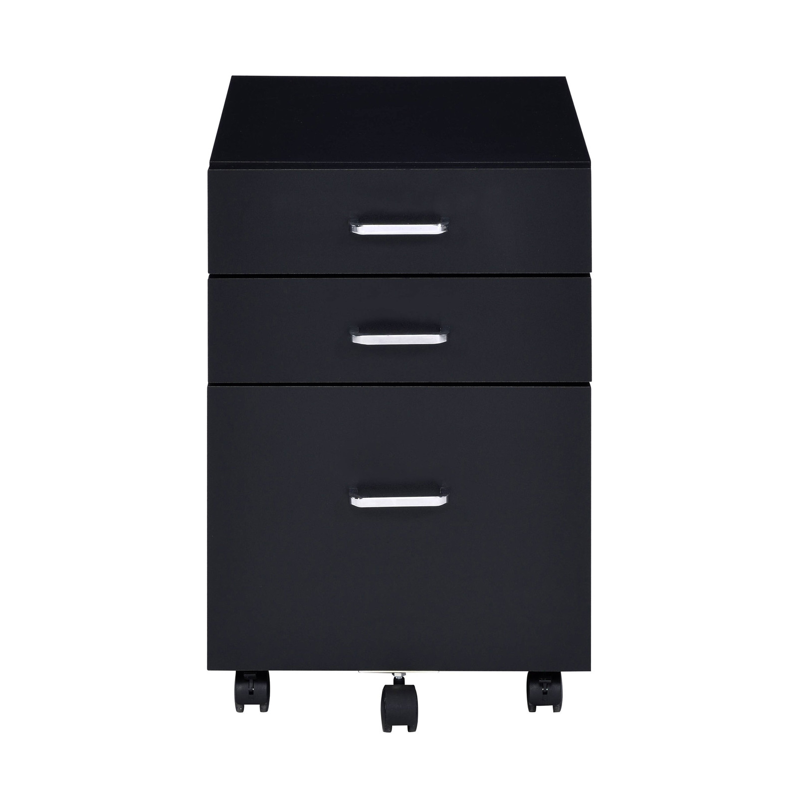 Specifications Place of Origin Taiwan, China Main Color Black+Silver Main Material Wood+Metal Product Style Modern Cabinets Storage Quantity 3-4 Drawers Cabinets Type Filing Cabinets Dangerous Goods #dangerFlag# Dimensions & Weights Assembled Length (in.) 16.50 Assembled Width (in.) 19.50 Assembled Height (in.) 22.50 Weight (lbs) 35.50 Product Features Modern file cabinet featuring a sleek and contemporary design, perfect for complementing your modern office or home décor Three spacious drawers provide ample storage space for organizing and storing your files, documents, and office supplies Caster wheels included for easy mobility, allowing you to move the file cabinet effortlessly around your workspace Boasts a sturdy top with a thickness of 15mm, ensuring durability and stability for various items placed on it. Description Romance Copy Elevate your office or home décor with this sleek and contemporary file cabinet, designed to complement modern spaces. With three spacious drawers for efficient organization and caster wheels for effortless mobility, this cabinet combines style with functionality for seamless workflow. Product Details Set includes One (1) cabinet Dimensions 22.5 inches high x 16.5 inches wide x 19.5 inches deep Materials Particle Board, Veneer, Metal, Wood Finish color Black and Chrome