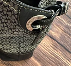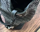 The Coach Black Signature Monogram Leatherware Hobo Handbag Purse is a medium-sized rectangular bag with a zip closure and black leather shoulder strap. It features silver hardware accents, stitched detailing, and a lined interior with inner pockets. The exterior is crafted from a combination of canvas and leather, with a stamped monogram pattern and a classic black exterior color. This stylish hobo bag is perfect for travel, casual outings, and workwear, making it a versatile accessory for any woman's wardrobe. The Coach brand adds a touch of designer charm to this sophisticated piece. some wear on leather on bottom, please see pics the closure clasp leather is coming apart, but can be fixed. please see pic Welcome to Southern Girl Attic Finds – we're so glad you're here! Before placing your order, please take a moment to review our shop policies: All sales are final. We do not accept returns or exchanges. Happy to combine shipping! Message us before checking out, and we’ll adjust the shipping cost for multiple items. Please ensure your shipping address is correct at checkout. We cannot issue refunds for items sent to an incorrect address. Please review all photos carefully to ensure you’re satisfied with the item’s condition and details before purchasing. Thank you for shopping small and supporting our store!