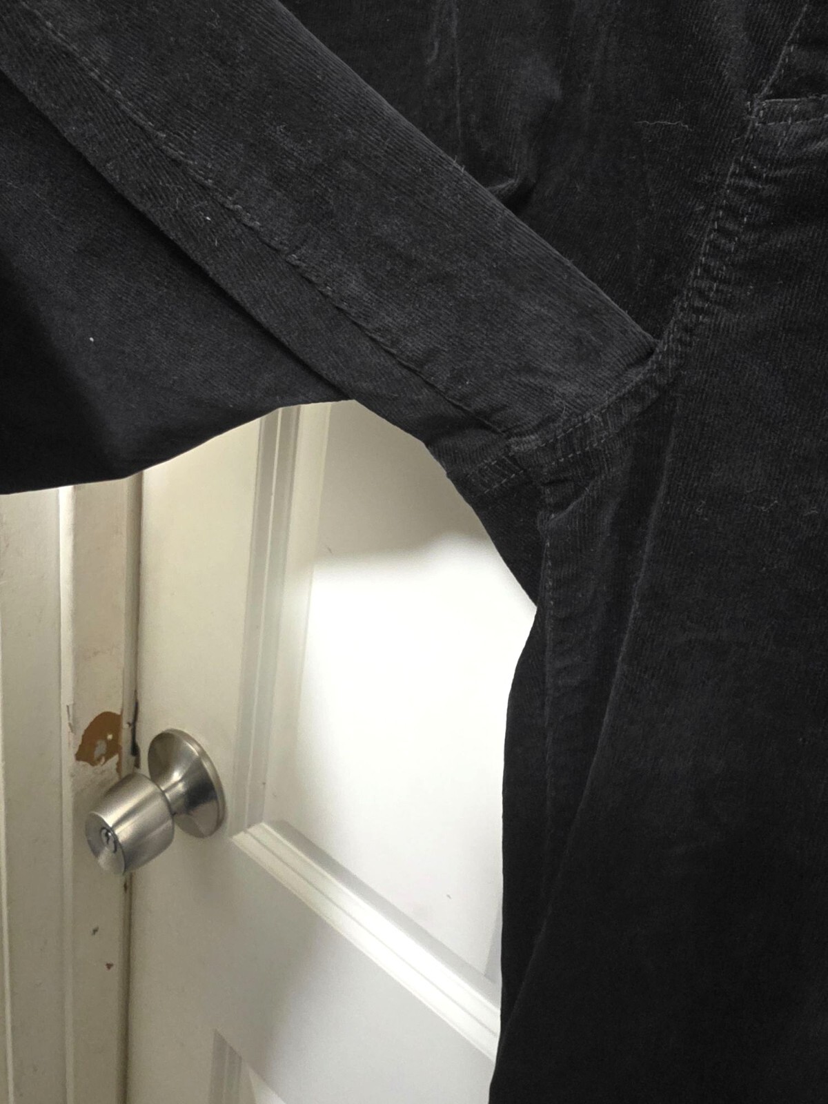 These corduroy pants provide a stylish and comfortable fit with a flared silhouette. Designed for versatility, they pair effortlessly with various outfits. • Flared leg design for modern style • Button and zip closure for secure fit • Two front and two back pockets • Soft corduroy material • Belt loops for accessorizing MEASUREMENTS insert 34 waist 43 CONDITIONS pre owned, minor wear, no visible flaws good conditions. see photos for flaws details.