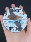 This handmade magnet features 2 hand illustrated Dachshund dogs. Flip the magnet to display a clean or dirty dog! Perfect for keeping track of dishes in the dishwasher. Makes a wonderful gift or unique touch of decor for your dishwasher! Magnet measures 3.5". PLEASE MAKE SURE YOUR DISHWASHER HAS A MAGNETIC FRONT. MAGNET WILL NOT STICK TO A PLASTIC, ALUMINUM OR GLASS DISHWASHER DOOR. *This design is also available in other Dachshund colors!! Please visit the DISHWASHER MAGNETS section in my store for more info. Made with quality materials, this magnet is rigid and does not bend. Artwork is my own. All items are handmade & made to order by me in my home studio. I use a variety of professional presses to make quality gifts and accessories. Thank you for supporting my small, handmade business. I hope my art brings you joy! :) -Shelby I offer combined shipping in my eBay store. (Use the shopping cart feature when checking out and save on shipping when purchasing multiple items in my store!)