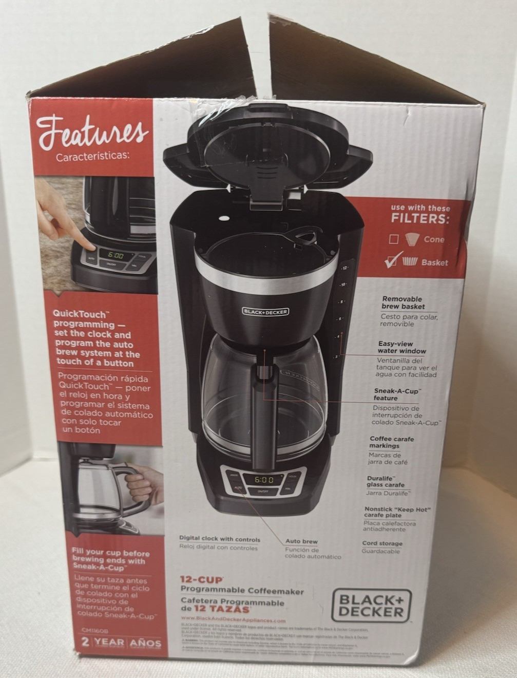 The Black + Decker 12 Cup Programmable Coffeemaker with Digital Controls CM1160B is a convenient and efficient coffee maker that brews delicious coffee using ground coffee. This sleek black machine features a digital control panel, programmable settings, and an auto shut-off function for added convenience. With a generous capacity of 12 cups, this coffeemaker is perfect for large families or busy households. The cord storage and included user manual make it easy to use and maintain, while the wall plug-in power source ensures consistent performance. Upgrade your morning routine with this reliable Black + Decker coffee maker.