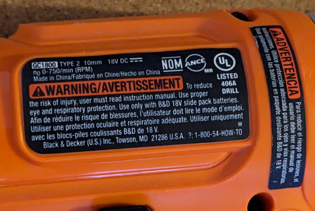 Black & Decker GC1800 18V Cordless Drill with Battery – Sold As-Is, Great DIY Bargain! Get your hands on this pre-owned Black & Decker GC1800 18V Cordless Drill , the perfect tool for your DIY projects, repairs, and home improvements! While this drill is sold as-is and does not include a charger , it comes with a battery (condition unknown), making it an excellent choice for anyone with a compatible charger or a bit of know-how. Key Features: 18V Power : Ideal for light to medium drilling and screw-driving tasks, providing the strength you need to get the job done. Cordless Convenience : Work anywhere without the restriction of a cord, offering ultimate flexibility for your projects. Ergonomic Comfort : Lightweight with a comfortable grip for easy handling, even during extended use. Battery Included : Comes with a battery to get you started (condition of the battery is unknown, so please verify compatibility). Condition Details: This tool is sold as-is , making it an ideal choice for someone looking to fix or restore a drill at a budget-friendly price. It's in good pre-owned condition with typical signs of use but still holds great potential. Whether you're looking for a replacement tool, need parts, or are simply after an affordable drill , this Black & Decker GC1800 is a fantastic deal! Don't miss out—grab it today and take advantage of this great find!