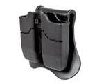 Black Double Magazine Pouch for 1911 Single Stack .45 ACP magazines. Made of lightweight polymer with adjustable retention, suitable for various gun models like Colt and Smith & Wesson. Includes two magazines, features drainage and silicone padding for comfort. Ambidextrous design with paddle, belt, or hip carry options. Ideal for shooting sports, this pouch ensures easy access and secure storage of ammunition.