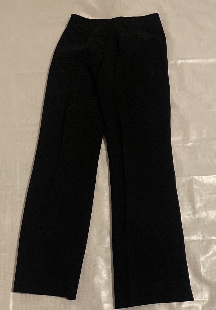 These black dress pants are a versatile addition to any woman's wardrobe. The wide-leg style offers a flattering fit, while the polyester material is easy to care for and perfect for year-round wear. The zip and button closure adds a touch of sophistication, making these pants suitable for various occasions from casual outings to workwear. With a size 2 and 31.5-inch inseam, these pants are designed for a regular fit and are ideal for creating stylish ensembles for the winter, fall, or spring seasons. 13” front seam to seam 10” rise No flaws