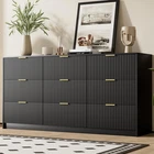 Store New Arrivals Add to Favorite View Feedback Contact Black Dresser for Bedroom, Modern Dresser with 9 Drawers and Smooth Slides, Wide Chest of Drawers with Golden Handles for Bedroom, Living Room, Closet, 15.7" D X 63" W X 31.5" H Description Room Type Bedroom, Closet, Living Room Assembly Required Yes Color Black Target Audience Adult Brand Furniway Material Engineered Wood Warranty Type Limited Item Weight 120 pounds Number of Drawers 9 Size 9 Drawers Finish Type Painted Product Dimensions 15.7"D x 63"W x 31.5"H Manufacturer Furniway Elegant and Exquisite Modern Design: When viewed as a whole, this balck dresser is not just a piece of furniture, but more like a work of art. The unique fluted panel design makes the lines very smooth and beautiful, increases the overall sense of hierarchy and improves the visual depth of the space. If you pursue the perfect combination of practicality and personalization, this is the right choice for you! Large Capacity Storage Space: Dimensions: 15.7"D x 63"W x 31.5"H. Equipped with 9 large-capacity drawers, it provides plenty of storage space for conveniently organizing your clothes, accessories, or bed linens, etc., keeping your room neat and organized. The wide top space is also perfect for placing potted plants, photos and other decorative items. Multi-Situation Use: In addition to using it as a dresser in your bedroom, you can also place it wherever you want or wherever you need to store things. This 9 drawer dresser is also suitable to be placed in the living room, entrance, aisle hallway to organize your room's items. Durable: Made of high quality wood for durability. The balck dresser's uniquely designed structure ensures that the center of gravity will not shift, ensuring stability. Anti-tipping design ensures the safety of you and your family. Easy Installation and Reliable Service: Comes with detailed and clear instructions, labeled parts, and all necessary hardware for assembly. Easy installation flowchart designed from the customer's point of view makes it easy and hassle-free for you to install the dresser. If you have questions, you can contact us and we will reply you within 24 hours. Product description 1 Bedroom 2 Living Room 3 Hallways Abundant Storage Space: Wide smooth desktop and large capacity drawers make your room goodbye to clutter. Fluted Panel Design: The unique vertical slotted surface enhances the texture and spatial presence of the dresser. ABOUT US We offer the best prices around on high quality products. Our E-store includes media such as books, movies, music and games while offering electronics, toys, sporting apparel, clothing, tools, general home, garden items and more. SHIPPING We are always working hard to ensure your package arrives as soon as possible. Please understand that some factors like weather, high postal traffic, and the performance of shipping companies are outside of our control. RETURNS We offer a 30-Day Return Policy on items which you are not completely satisfied with. You have the option for a full-refund or an exchange of the item. No returns are available on items shipped outside of the USA. PAYMENT We accept PayPal. CONTACT US This page content is yet to come Please ad us to your favorite seller and visit again later Thank You CUSTOMER SATISFACTION We try our very best to make sure every customer is completely satisfied. If there's a problem, message us! We're happy to help. WE ACCEPT Copyright © 2021 AutoDS. | All Rights Reserved