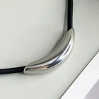 Features: Stand out with the curved tube pendant black leather rope torques choker necklace. Its unique curved tube designs and durable black rope set it apart from the rest. Crafted with quality materials, this necklace ensures both durability and comfort. The adjustable length allows for a perfect fit, while its makes it easy to pair with any attire. This versatile necklace is perfect for those who appreciate individuality and want to showcase their It's a must have accessory for fashion enthusiasts looking to make a statement. Whether you're attending a party, going on a date, or simply going about your day, this necklace adds a touch of sophistication to your look. Its adjustable length makes it suitable for various occasions. your unique with this trendy choker necklace. Its fashion and modern designs adds elegant touch to any making it a great gift for yourself or someone special. Specifications: Material:Elastic Rope + Titaniums Steel Chain Length:Approx.45+7cm/17.7+2.7inches Pendant:Approx.5.5cm/2.2inches Package Includes: 1 Piece Necklace note: 1.Please allow 1-2cm errors due to manual measurement, make sure that you do not mind before you order. 2.Due to the difference between different monitors, the picture may not reflect the actual color of the item.