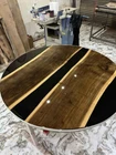 Black Epoxy Resin Coffee Dining Table Top, Round Wooden River Table Top, Decor