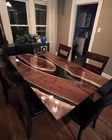 Transform your kitchen and dining space into a coastal haven with our stunning Walnut Epoxy Table. Meticulously handcrafted, this one-of-a-kind piece seamlessly blends the warmth of walnut wood with the ethereal beauty of ocean-inspired epoxy resin. Key Features: Natural Elegance: The table is crafted from high-quality walnut wood, showcasing its natural grains and warm tones. Each piece of wood is carefully selected for its unique character. Resin Artistry: The tabletop features a captivating epoxy resin design that mimics the fluidity and movement of Resin . Swirls of blues, greens, and whites create a mesmerizing visual experience. Durable and Functional: The epoxy coating not only adds a stunning aesthetic but also provides a durable, heat-resistant, and easy-to-clean surface, making it ideal for daily use in your kitchen and dining area. Versatile Design: Whether you're hosting a dinner party or enjoying a family meal, this table seamlessly blends into various decor styles, from coastal and rustic to modern and contemporary. Custom Craftsmanship: Each table is handcrafted by skilled artisans, ensuring a level of craftsmanship and attention to detail that sets it apart from mass-produced furniture. Specifications: Dimensions: 36"x24" Inches Materials: High-quality wood, epoxy resin Colors: Black Finish: Glossy and durable Shipping and Packaging: * We can make the table top similar to this as it is handmade or natural process you will not get the same as shown in picture but you will get the similar one * The table top is made in Agra India & fully handmade. * The top will be delivered by FedEx or DHL free of cost door to door. * If there is any local tax, custom duties or Vat will be paid by the buyer at the destination. * The parcel is dispatch with proper packing & fully insured covering all kind of risk. Thanking You.....