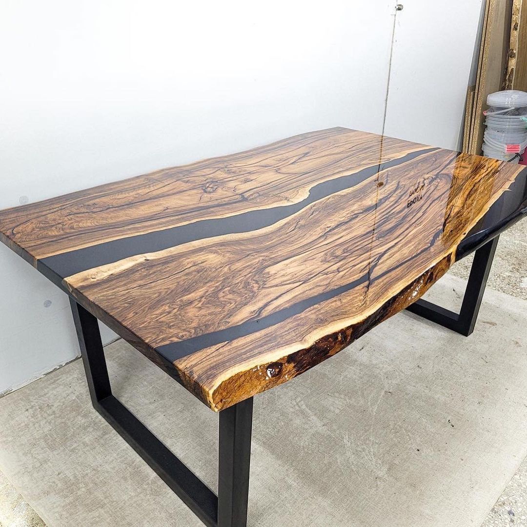 Black Epoxy Wood River Table Handmade Modern Resin Art Furniture