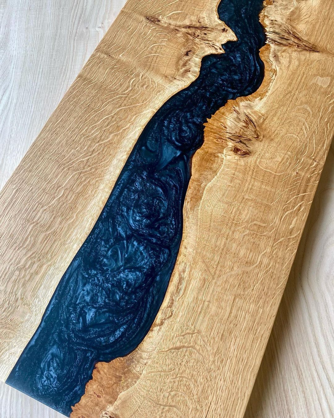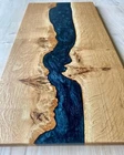Blue Epoxy Resin Ocean Wave Tabletop | Handmade Coastal Furniture