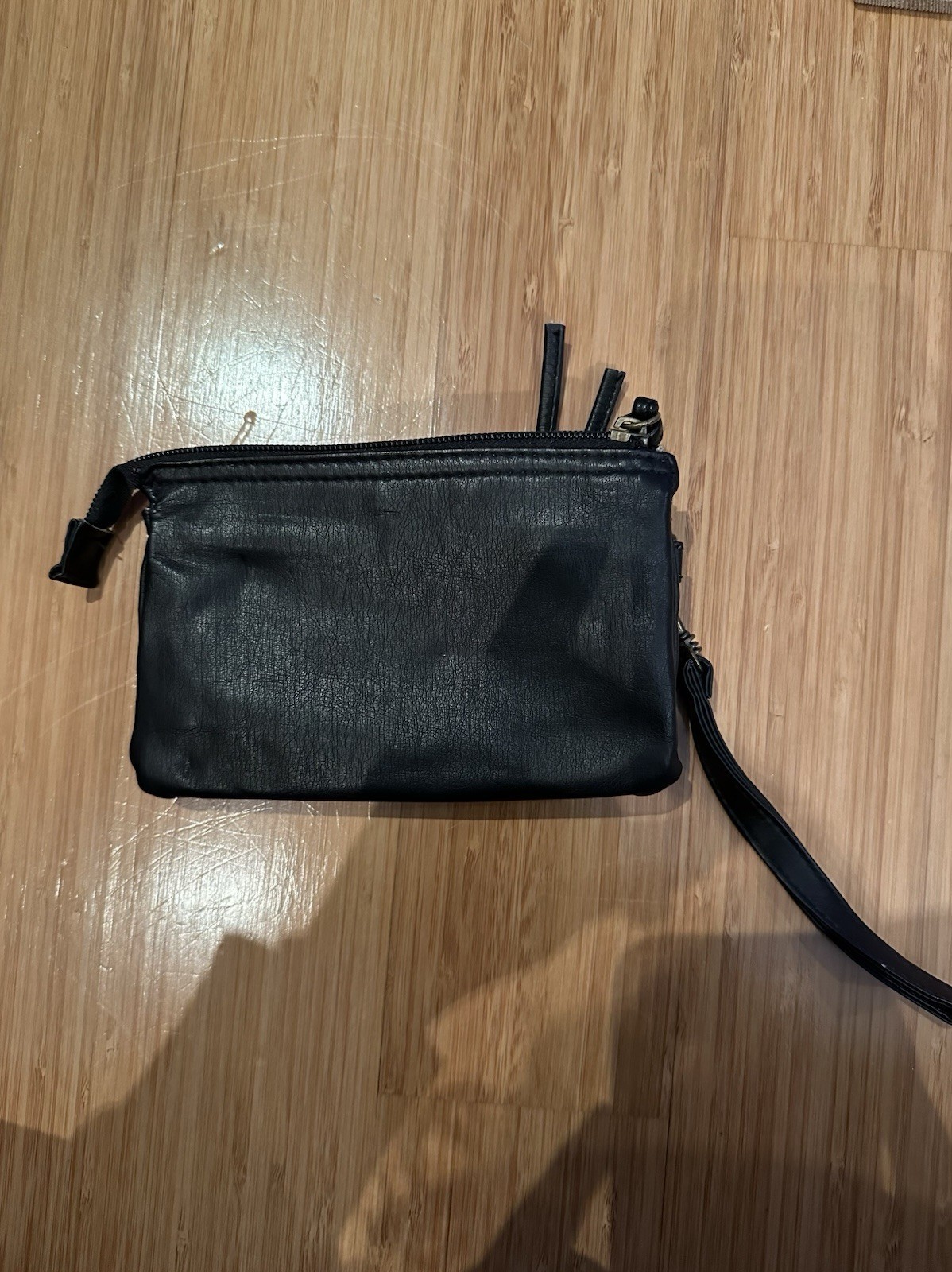 Black Faux Leather 4”x6” Wristlet with Tassel Zipper Closure